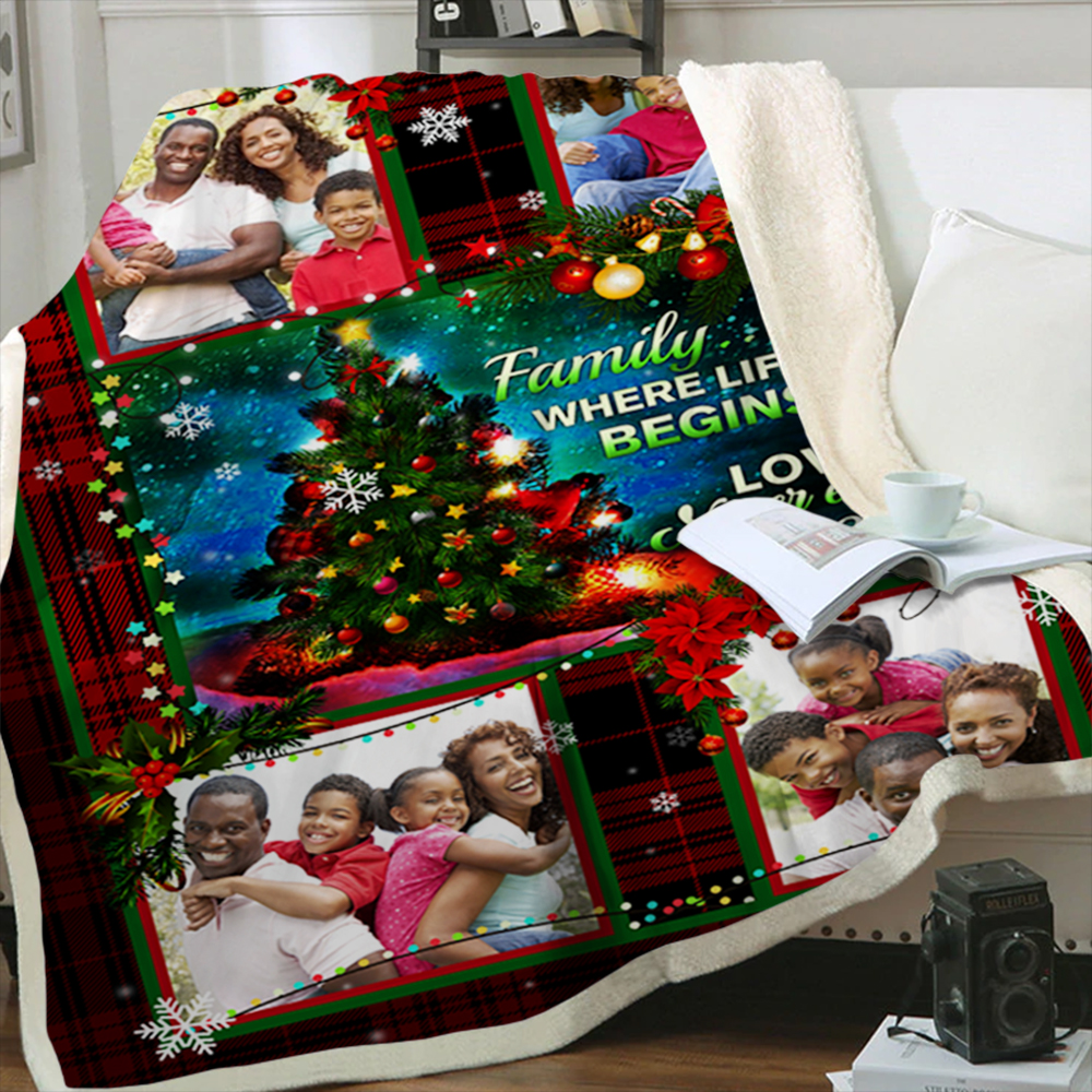 Let’s Shop Personalized Custom Photo Collage Merry Christmas Family Where Life Begins Fleece Blanket – Mink Sherpa Blanket!