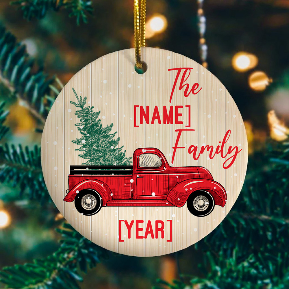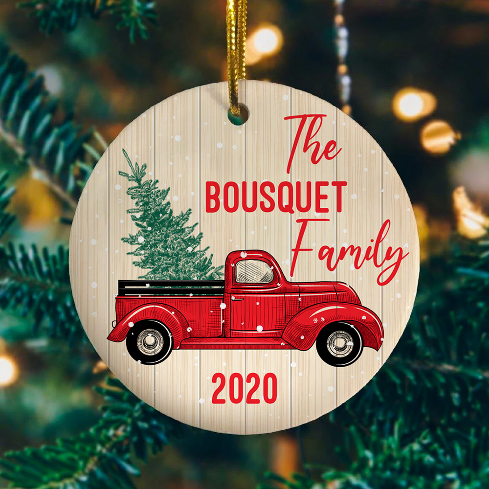Let’s Shop Personalized Family Red Truck Decorative Christmas 2020 Ornament Keepsake – Holiday Ornament!