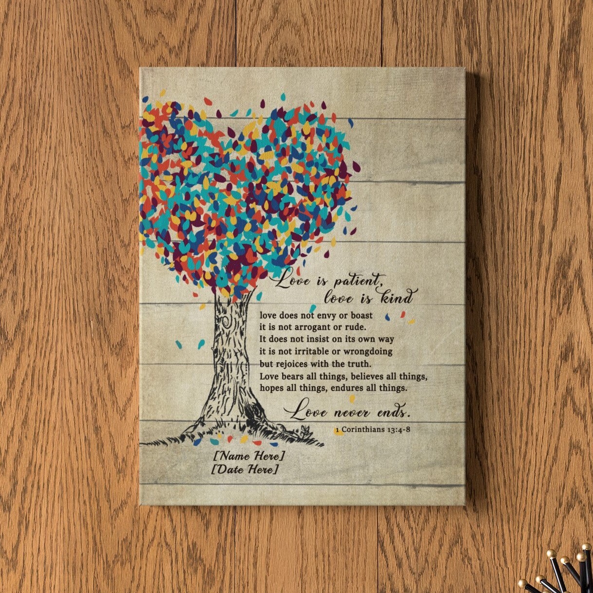 Let’s Shop Personalized Love Is Patient Love Is Kind Anniversary Family Tree Framed Canvas Prints – Home Decor Wall Art!