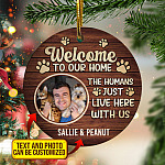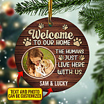Let’s Shop Personalized Photo Welcome to Our Home the Humans Just Live Here with Us Decorative Christmas Ornament!