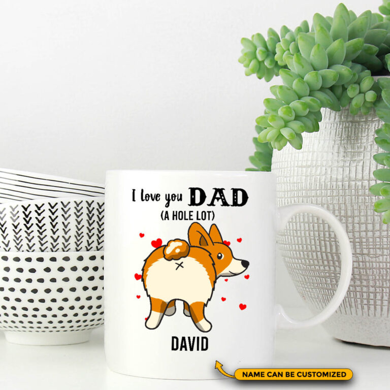 Let’s Shop Personalized Fathers Day Dog Dad I Love You Dad a Hole Lot Coffee Mug – Beer Stein – Water Bottle!