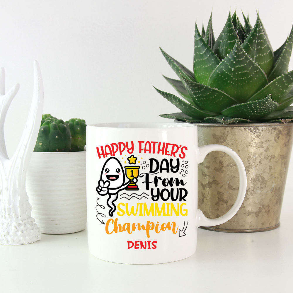 Let’s Shop Personalized Happy Father’s Day Swimming Champion Coffee Mug – Beer Stein – Water Bottle – Color Changing Mug!
