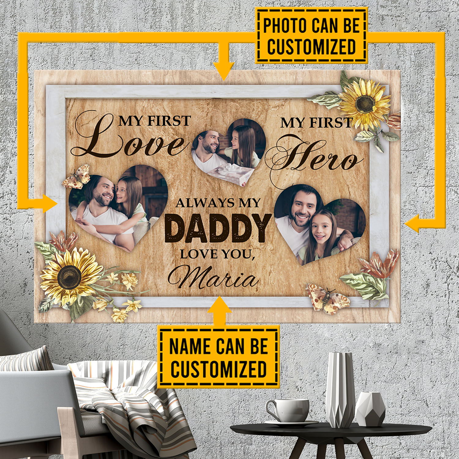 Let’s Shop Personalized Custom Photo My First Love My First Hero Always My Daddy Framed Canvas – Unframed Poster!