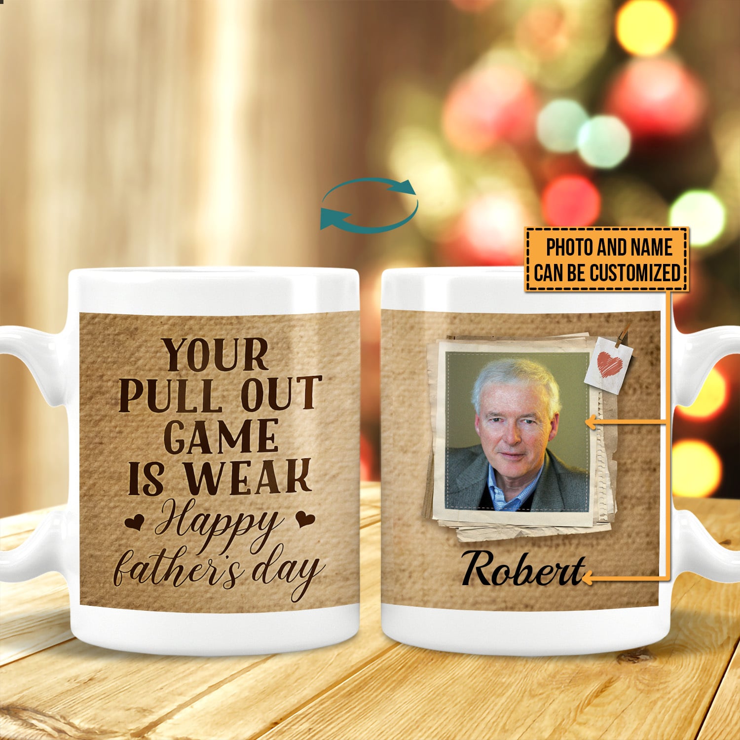 Let’s Shop Personalized Photo Your Pull out Game Is Weak Happy Father’s Day Two Sided Ceramic Coffee Mug – Beer Stein!