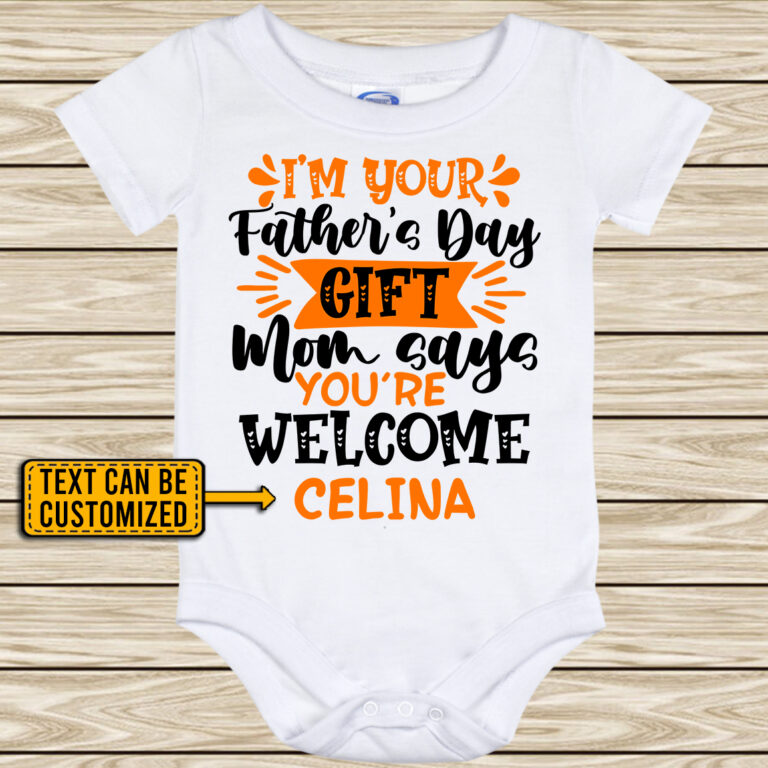 Let’s Shop Personalized I’m Your Father’s Day Gift Mom Says Your Welcome 1st Father’s Day Baby Onesie – Infant Bodysuit!