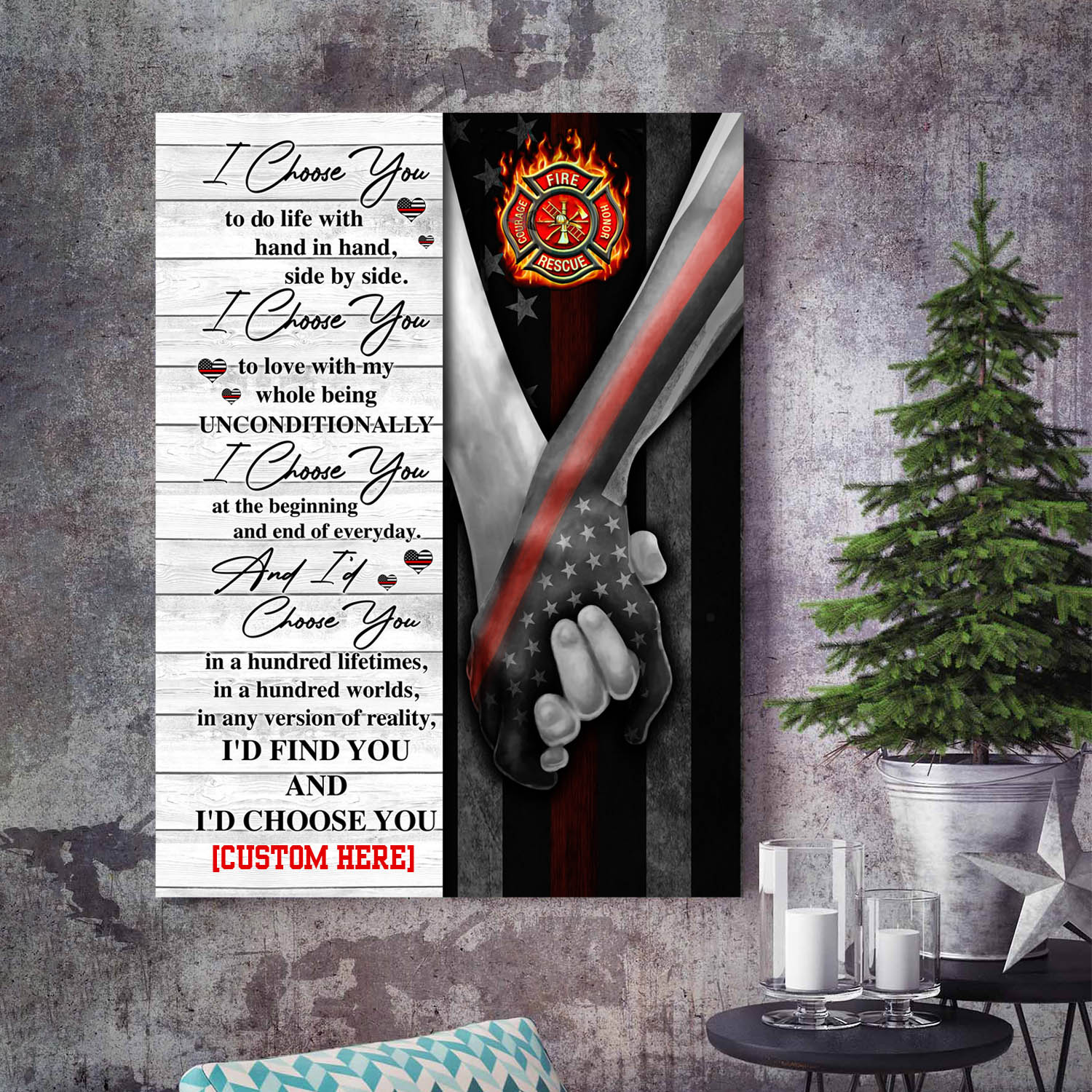 Let’s Shop Personalized Firefighter I Choose You To Do Life With Hand In Hand Side By Side Canvas Prints – Unframed Poster!