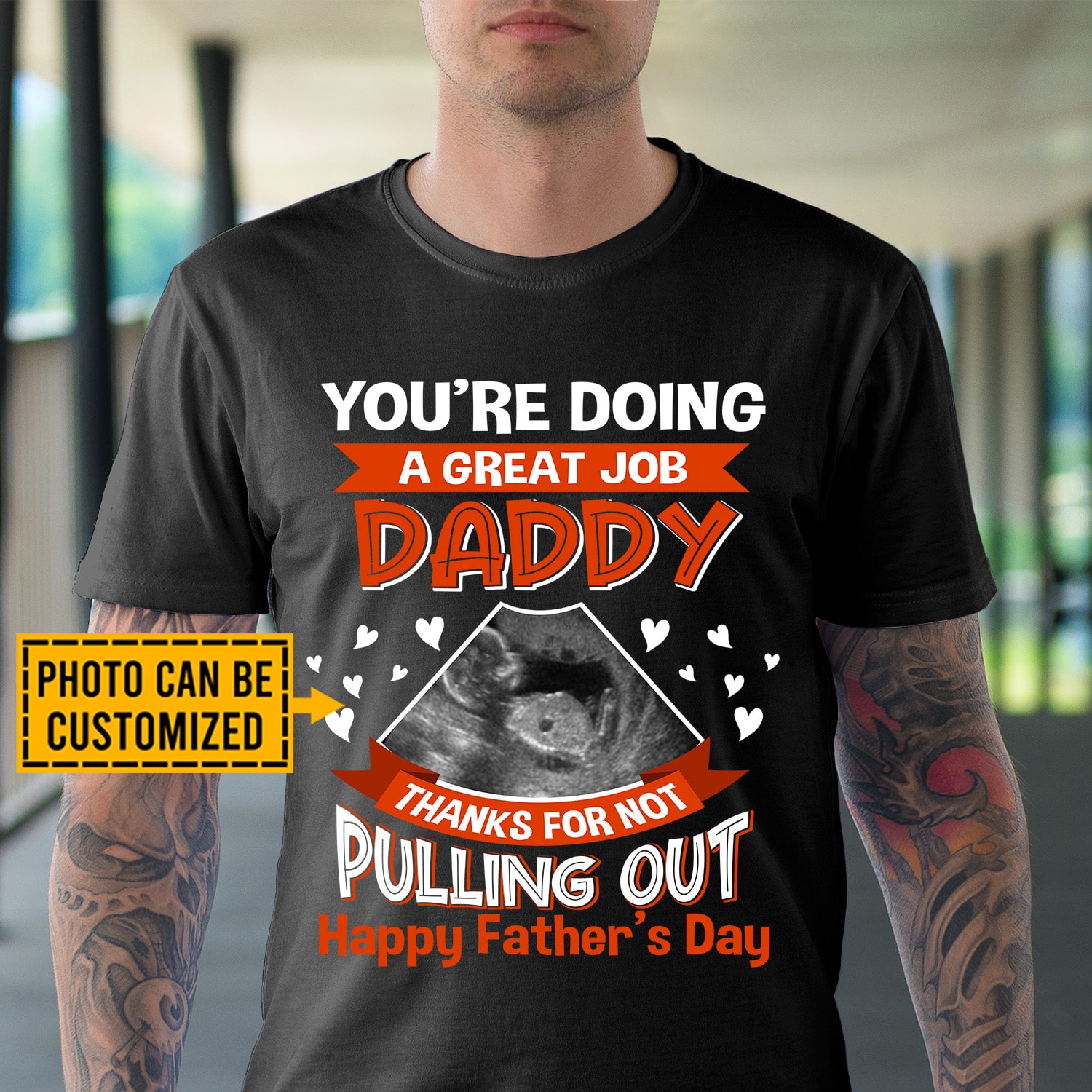 Personalized Photo You’re Doing A Great Job Daddy Thanks For Not Pulling Out Happy Father’s Day T-Shirt