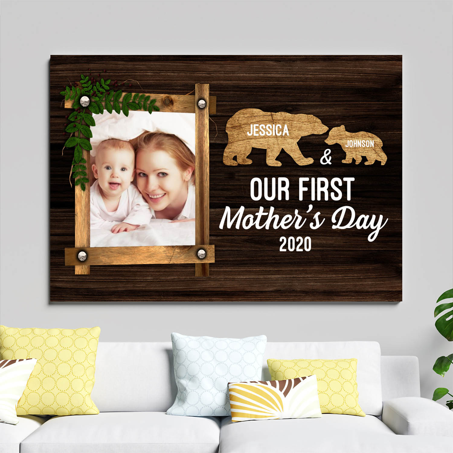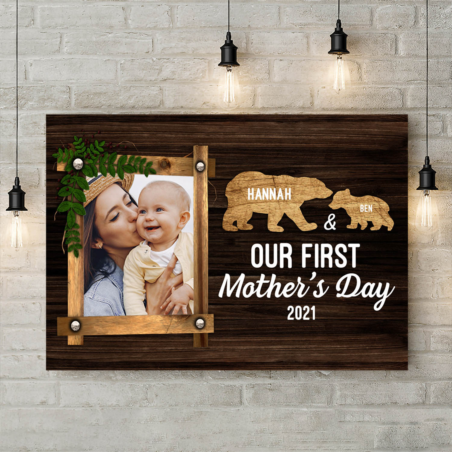 Let’s Shop Personalized Photo Our First Mother’s Day Cute Bears Wrapped Framed Canvas Prints – Unframed Poster!