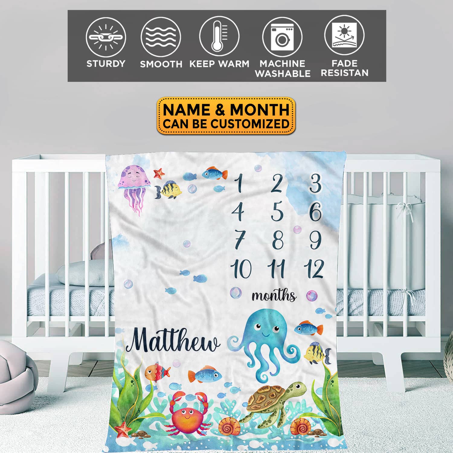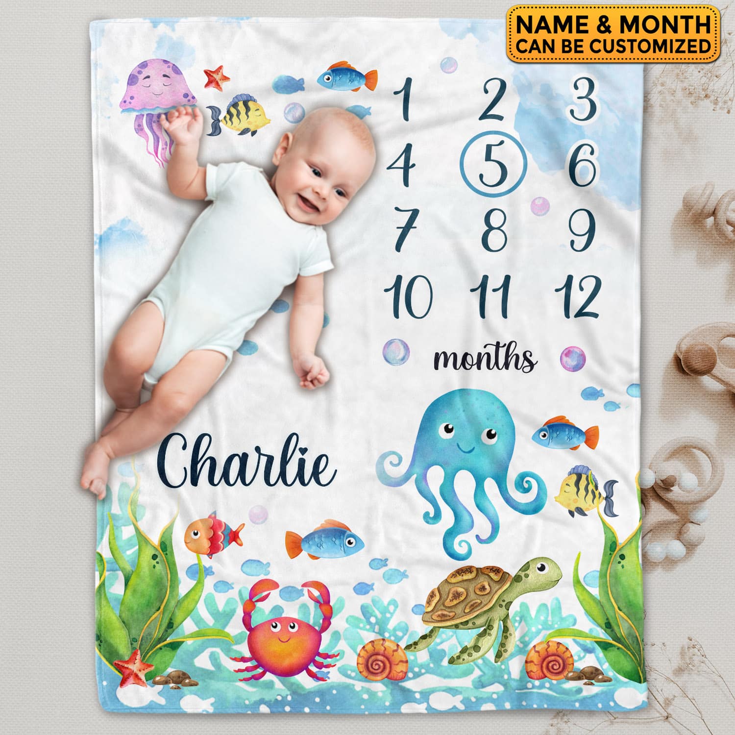 Let’s Shop Personalized Fish Baby Monthly Blanket Newborn Boy Girl Unisex Neutral – Fish Blanket for Newborn!