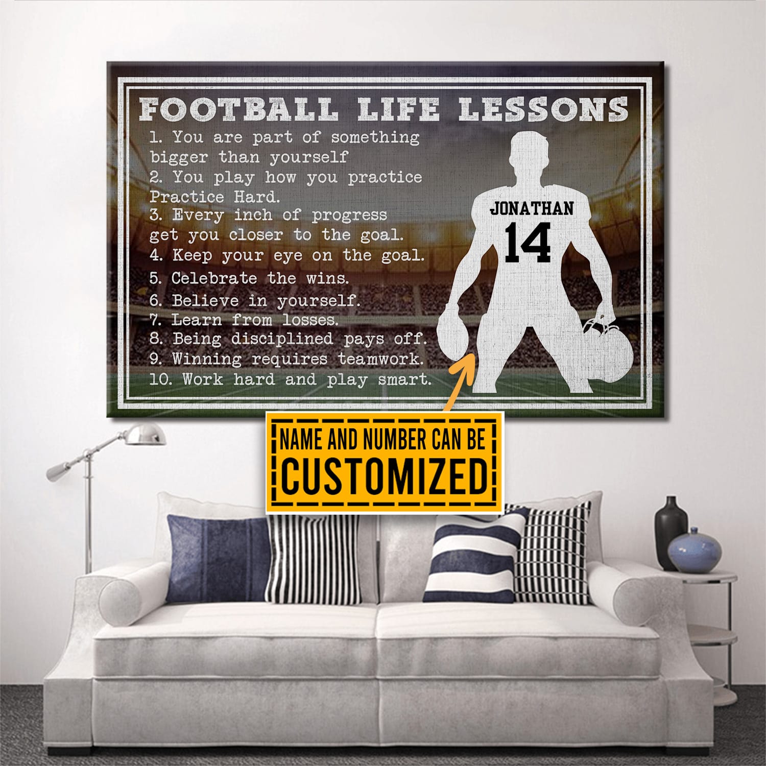 Let’s Shop Personalized Football Life Lessons Wrapped Framed Canvas Prints – Unframed Poster!