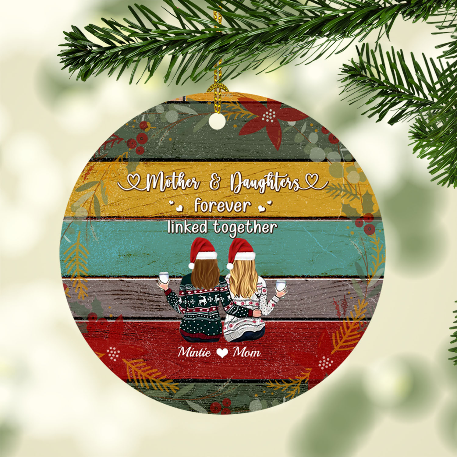 Let’s Shop Personalized For Two Mother and Daughter Forever Linked Together Christmas Circle Ornament Keepsake!