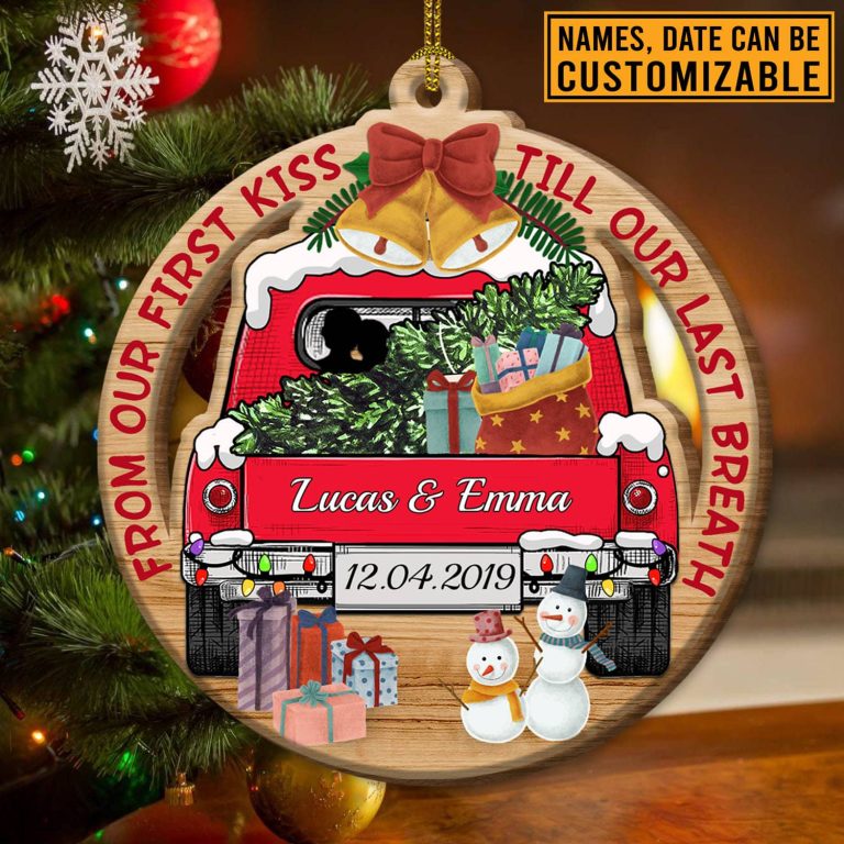 Let’s Shop Personalized From Our First Kiss Till Our Last Breath Couple Red Truck Custom Shaped Wooden Christmas Ornament!