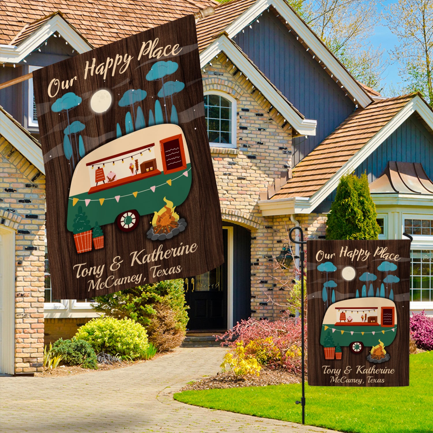 Are you spending too much time to find creative merchandise for you or suitable & special gifts for your mommy, your daddy, your son, your daughter, your children, your friends or someone you love? The struggle is over because we have various Funny Camping Couple Buddies Partner Meme Sign Garden Flag, Our Happy Place Happy Campers Camping Custom Garden House Flag, Funny Bigfoot Bear Camping Buddies Drinking Team Saying Flag, Funny Happy Campers Saying Flag, Cool Campfire Camper Saying Camping Flag which will make perfect presents for your beloveds. In order to make your present stand out, we have created lots of unique and awesome customized photo gifts & personalized designs.