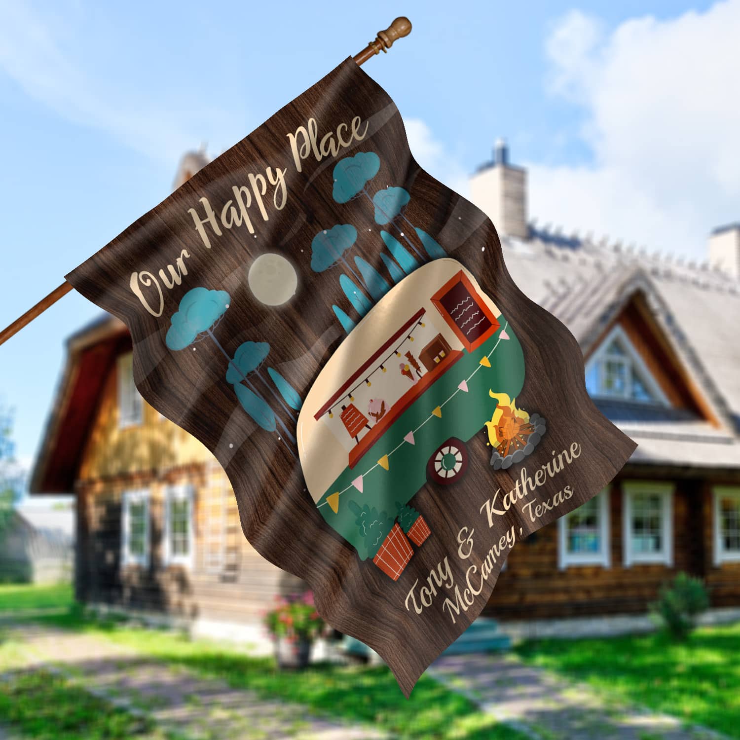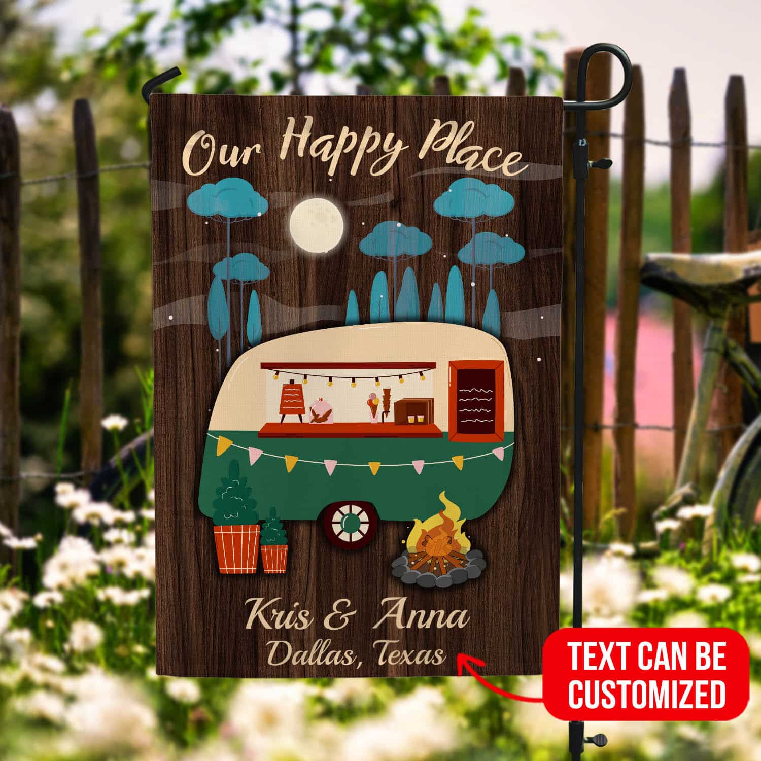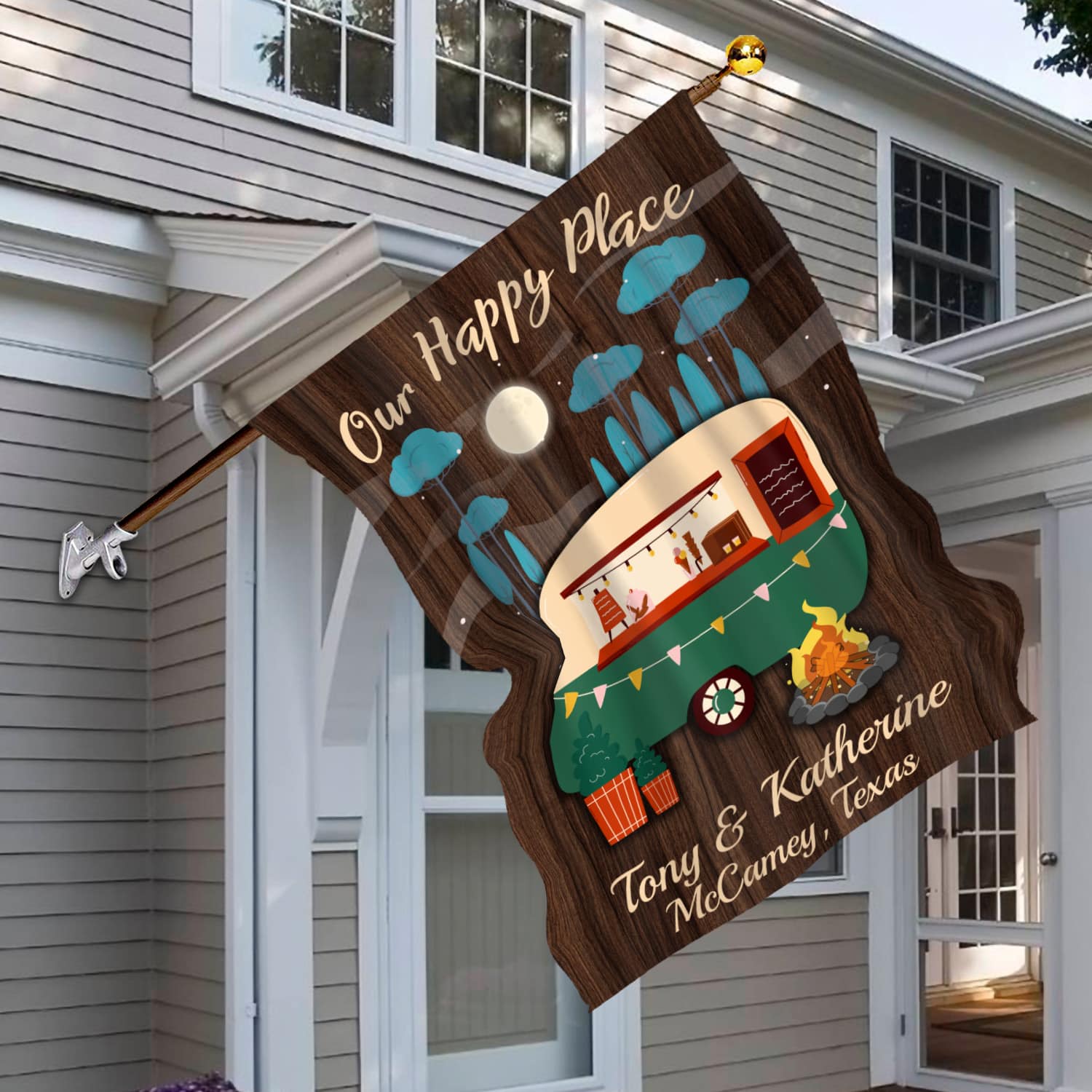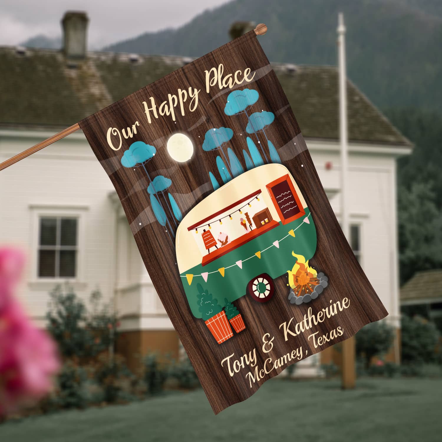 Let’s Shop Personalized Funny Camping Buddies Partners Meme Sign Flag – Our Happy Place Happy Campers Camping Custom Flag!