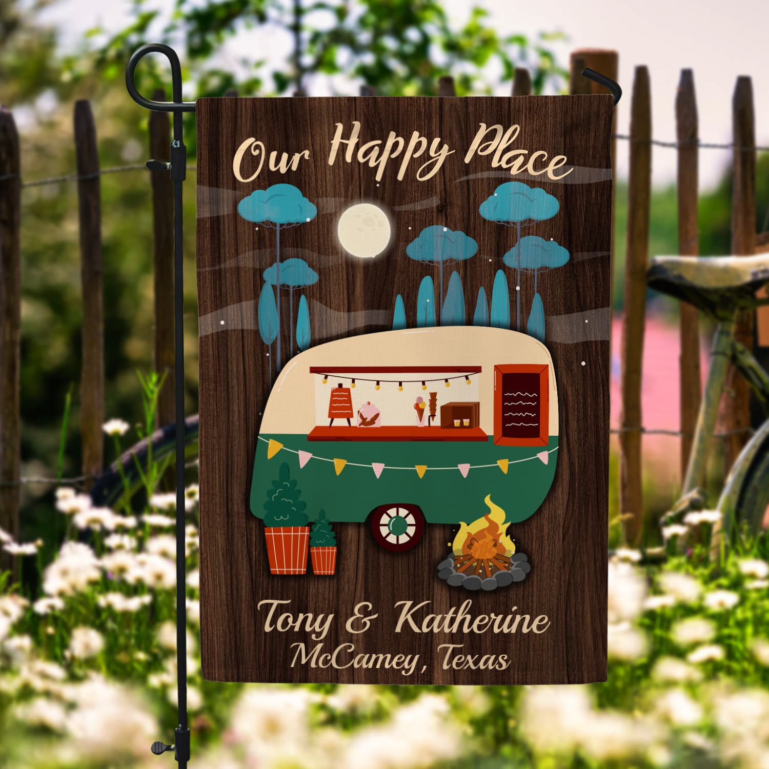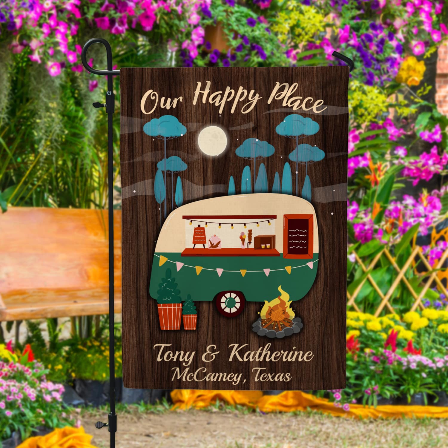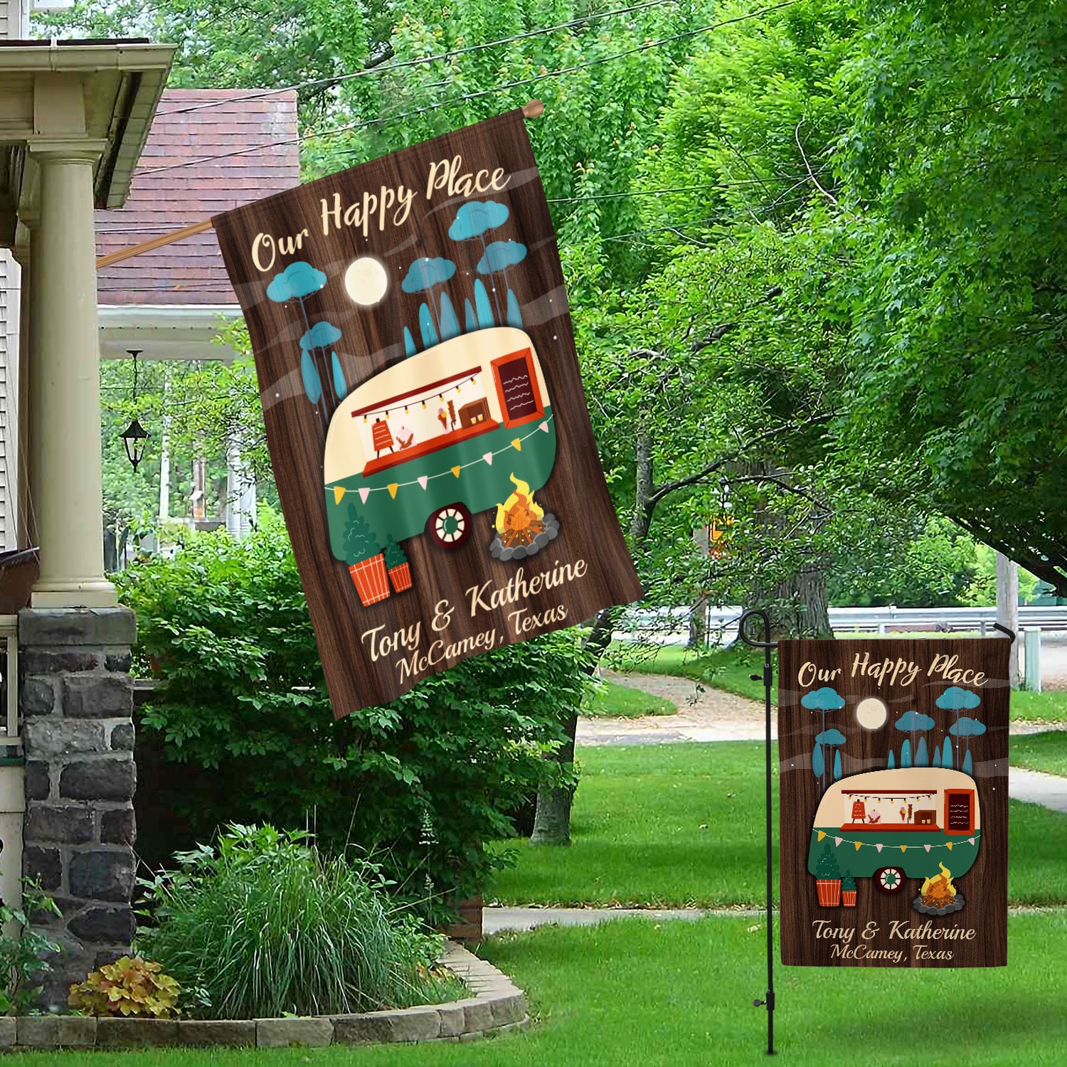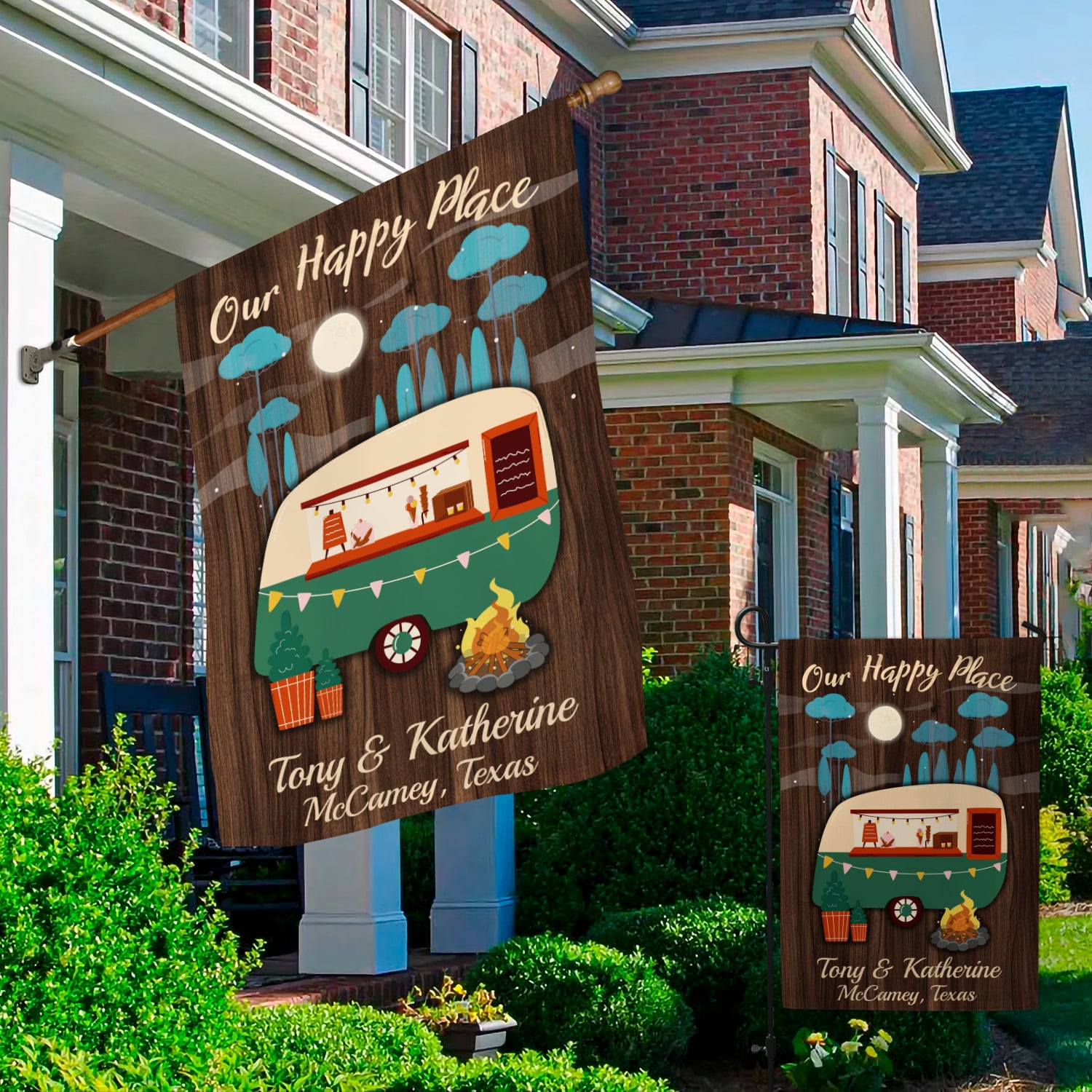 Let’s Shop Personalized Funny Camping Buddies Partners Meme Sign Flag – Our Happy Place Happy Campers Camping Custom Flag!