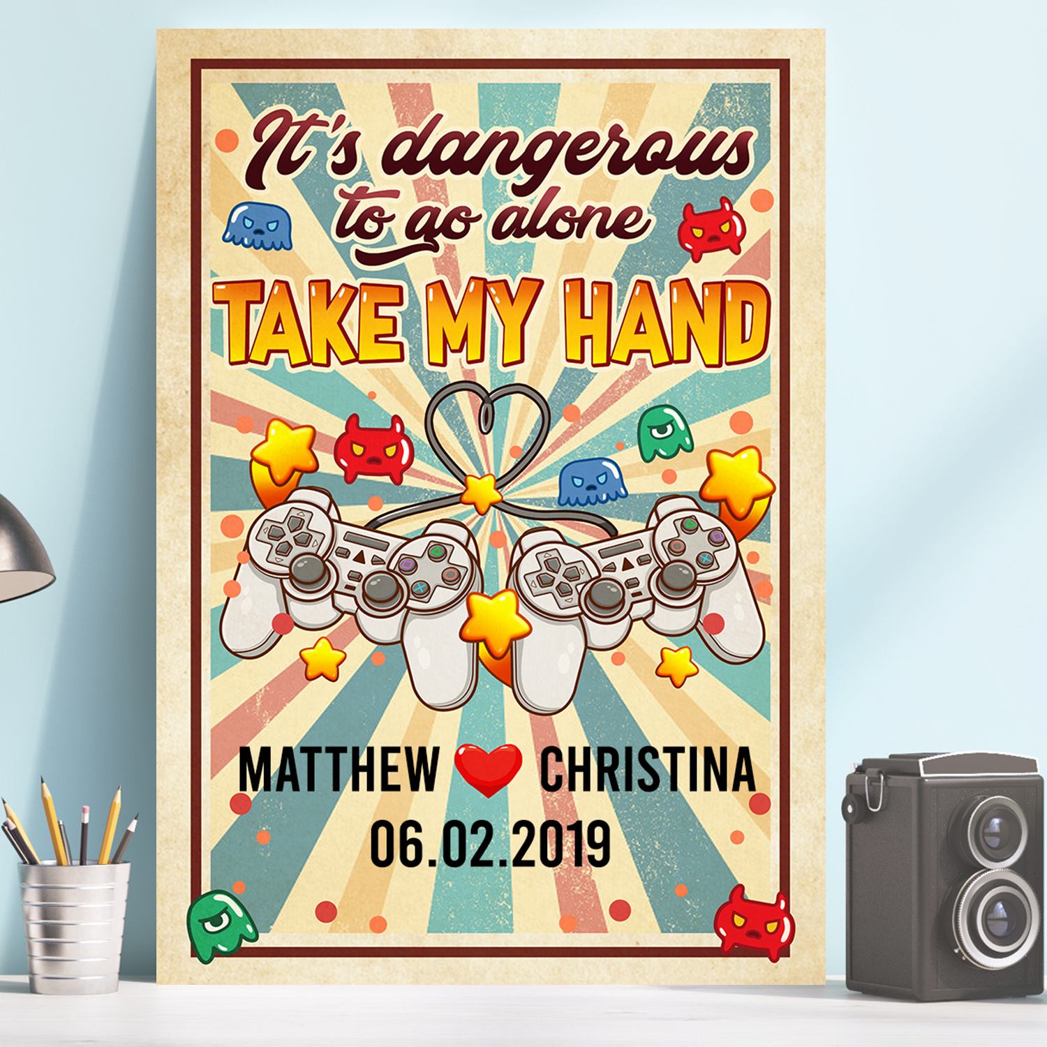 Let’s Shop Personalized It’s Dangerous to Go Alone So Take My Hand – Romantic Gift for Game Lover Couple Framed Canvas Prints – Unframed Poster!