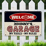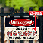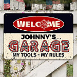 Let’s Shop Personalized Garage’s Name Welcome My Tools My Rules Retro Decorative Metal Sign – Funny Metal Sign Garage Wall Decor!