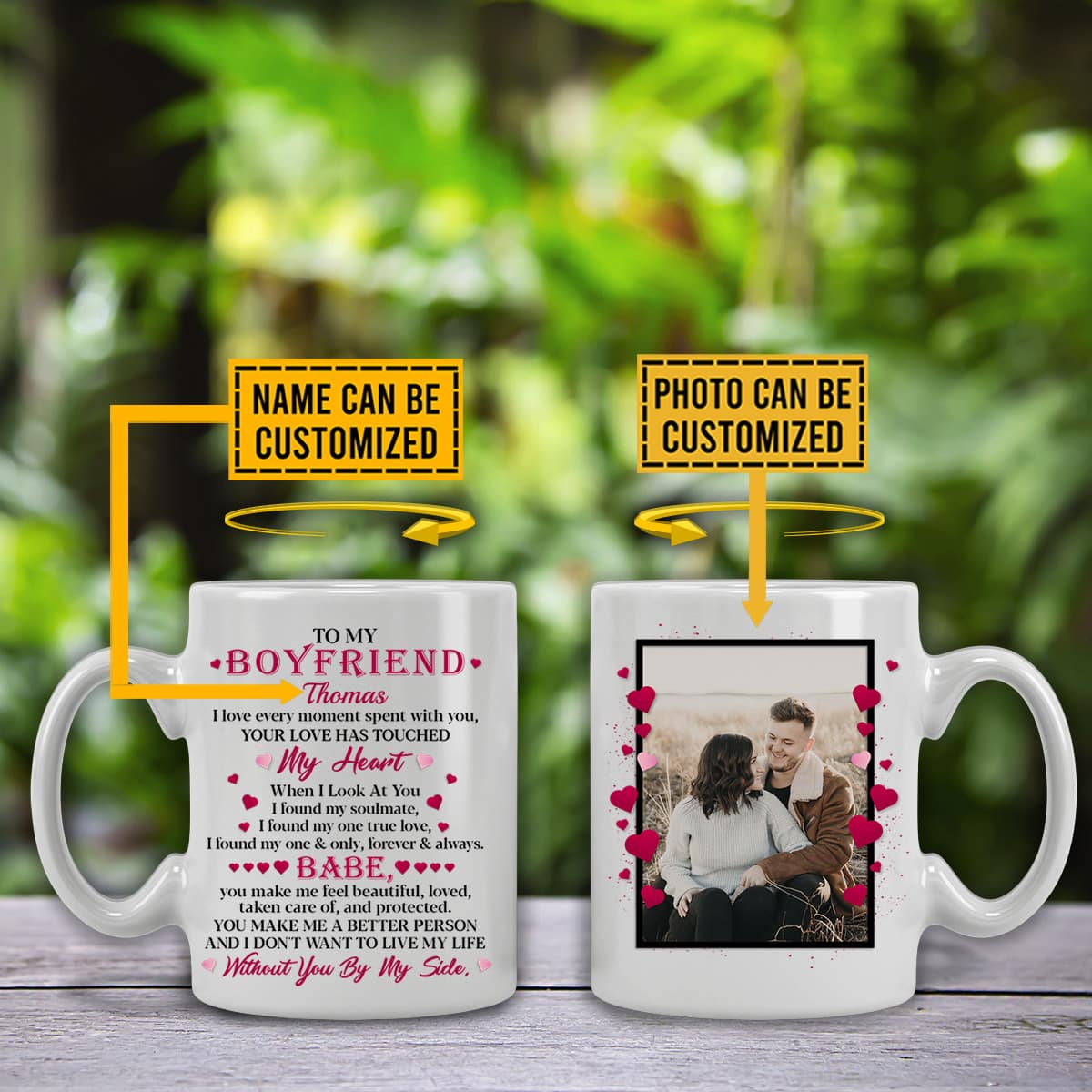 Let’s Shop Personalized Photo Couples To My Boyfriend I Love Every Moment Spent with You Two Sided Ceramic Coffee Mug!