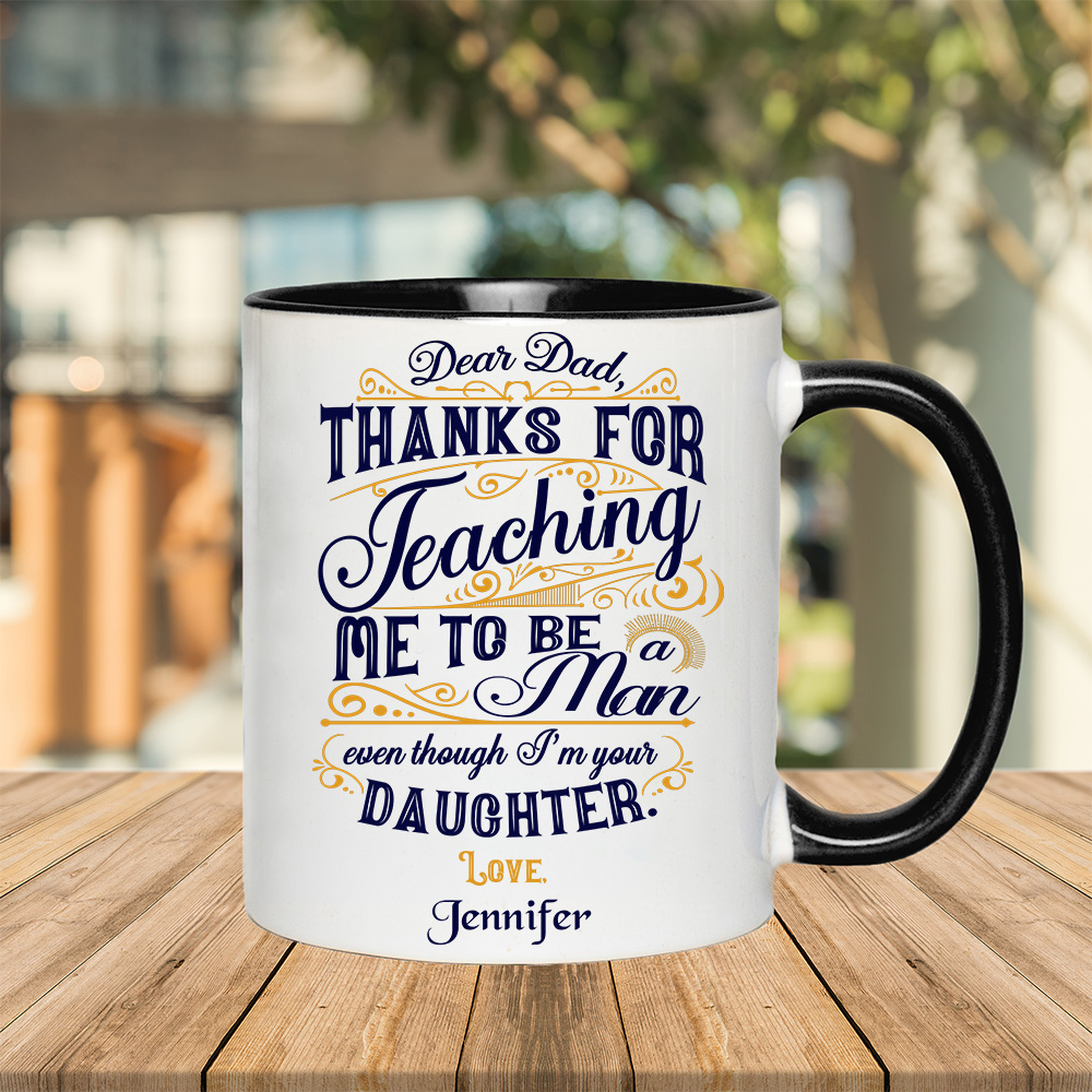 Shop Personalized Dear Dad Thanks For Teaching Me To Be A Man Even Though I’m Your Daughter Ceramic Accent Mug.