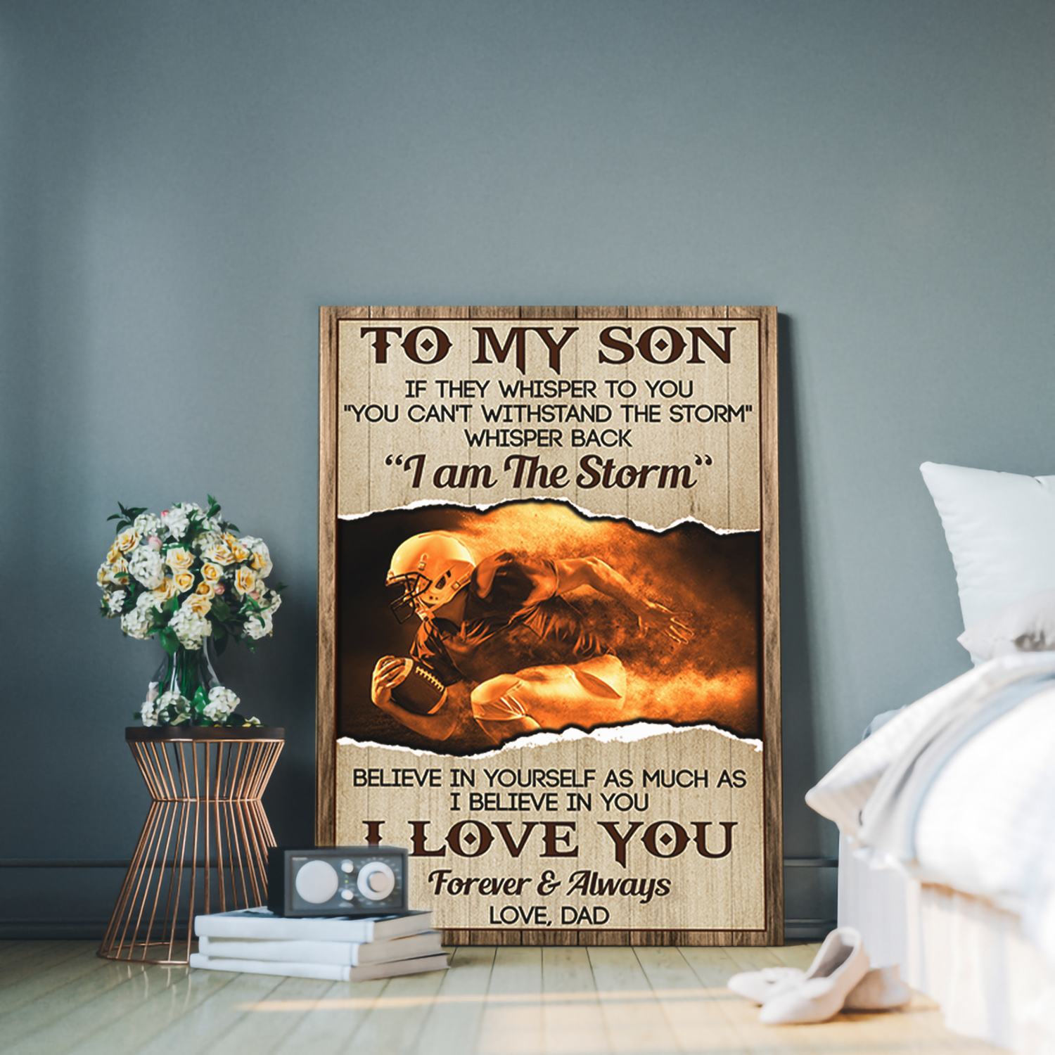 Let’s Shop Personalized Photo Dad To Son If They Whisper To You You Can’t Withstand The Storm Framed Canvas – Unframed Poster!