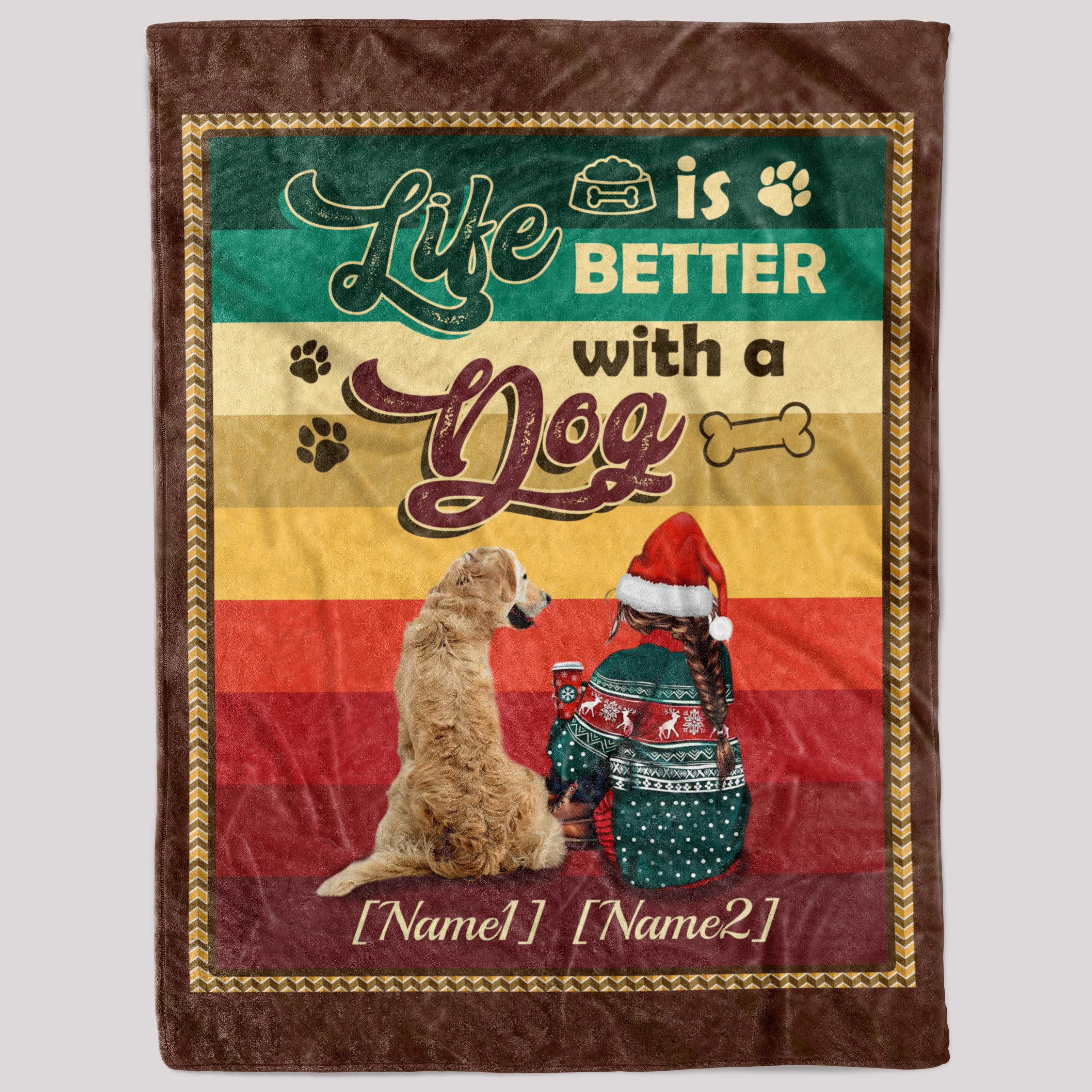 Let’s Shop Personalized Life Is Better with a Dog Golden Christmas Fleece Blanket – Mink Sherpa Blanket – Woven Blanket!