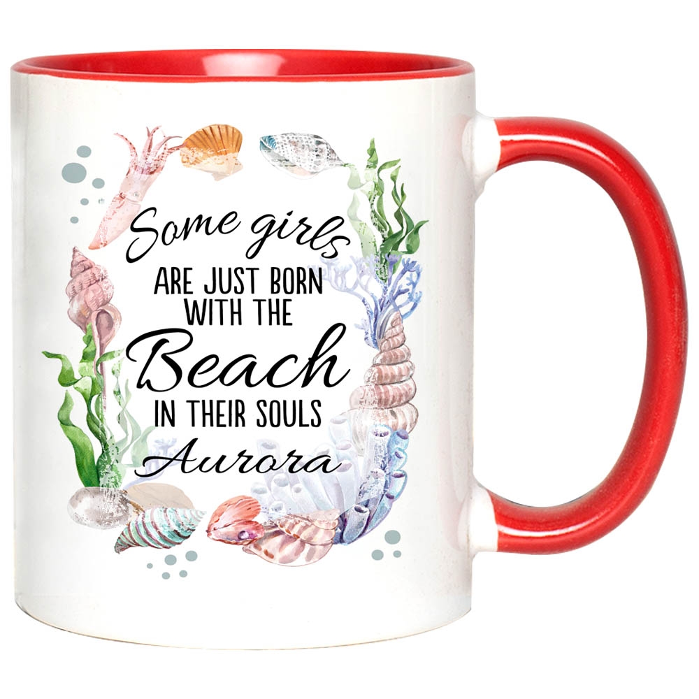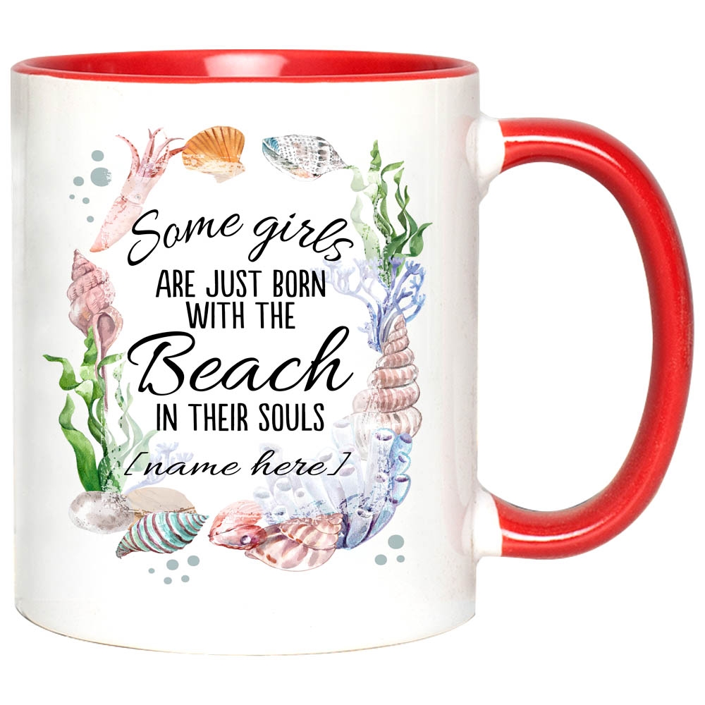Shop Personalized Some Girls Are Born with the Beach in Their Souls Accent Mug.