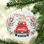 Let’s Shop Personalized God Blessed the Broken Road Red Truck Christmas Ornament Keepsake – Holiday Flat Circle Ornament!