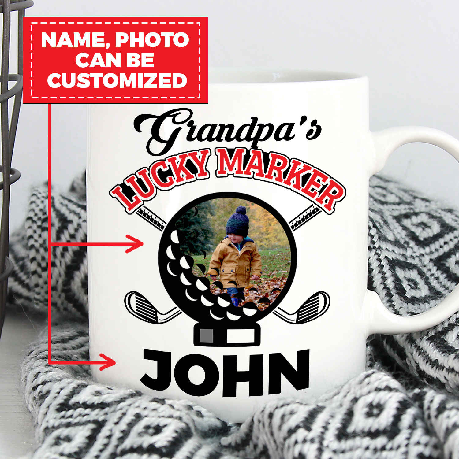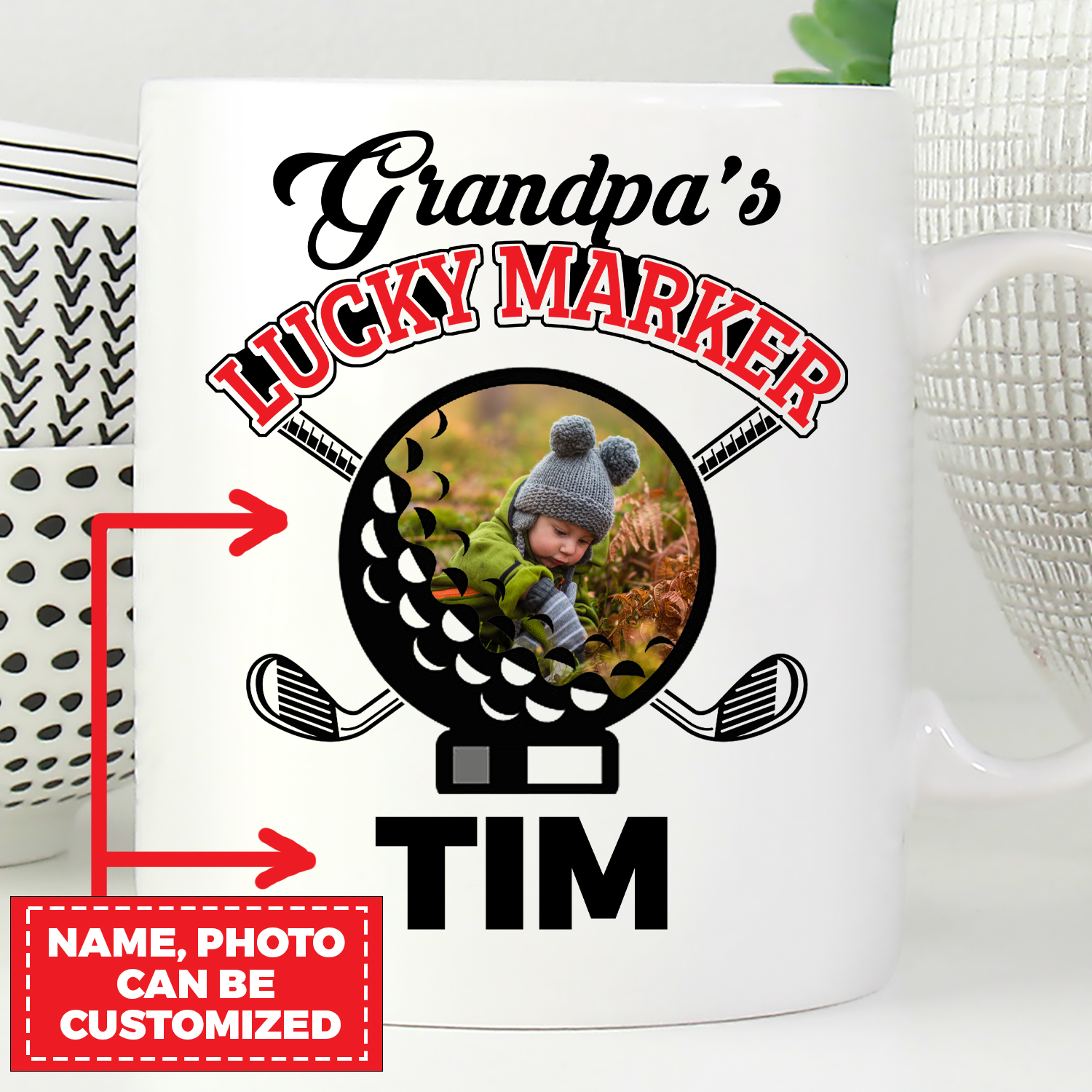 Let’s Shop Personalized Photo Grandpa’s Lucky Marker Golf Ceramic Coffee Mug – Water Bottle – Color Changing Mug!
