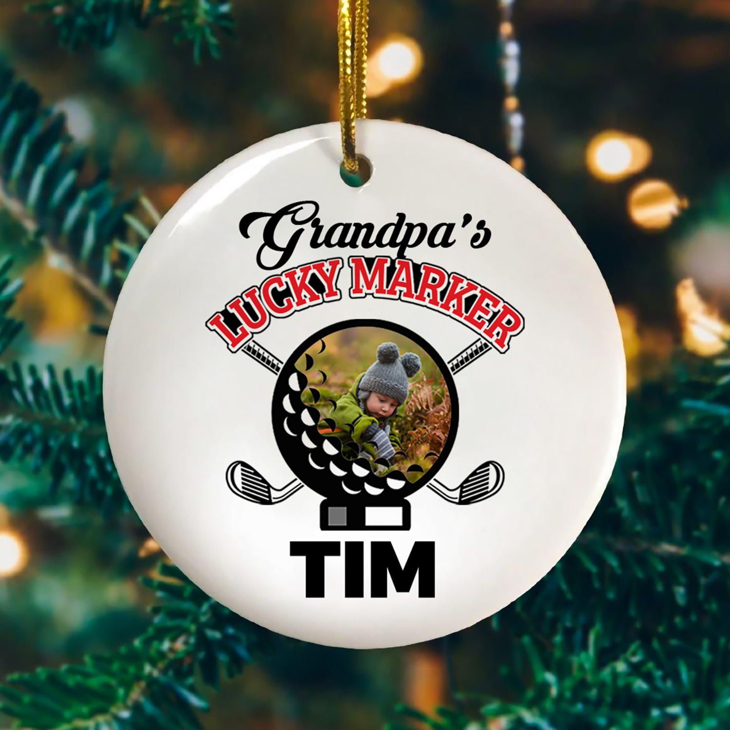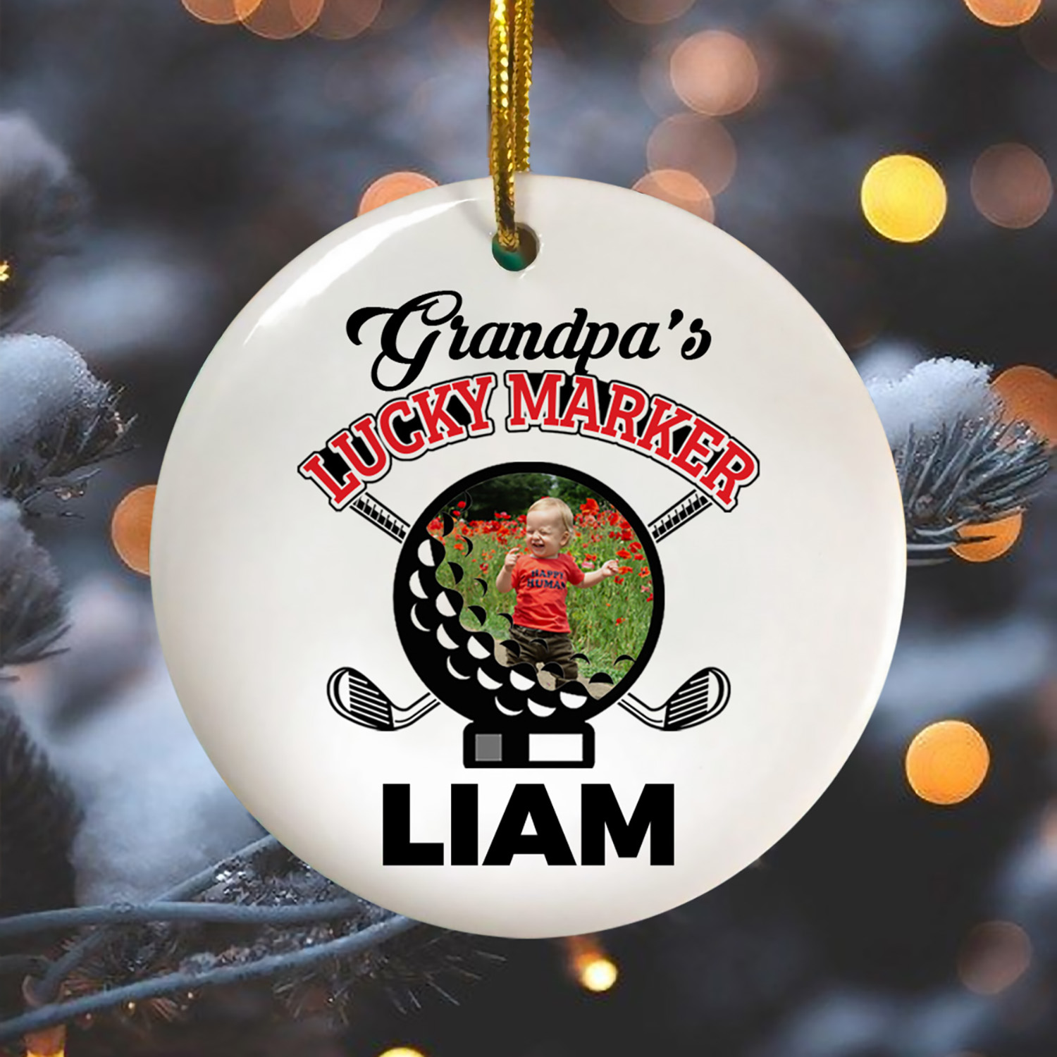 Let’s Shop Personalized Photo Grandpa’s Lucky Marker Golf Decorative Christmas Ornament – Holiday Flat Circle Ornament!