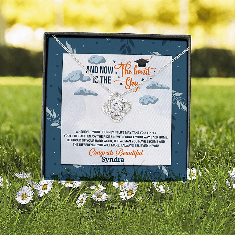 Let’s Shop Personalized And Now The Limit Is The Sky Love Knot Pendant Necklace – Custom Graduation Necklace!