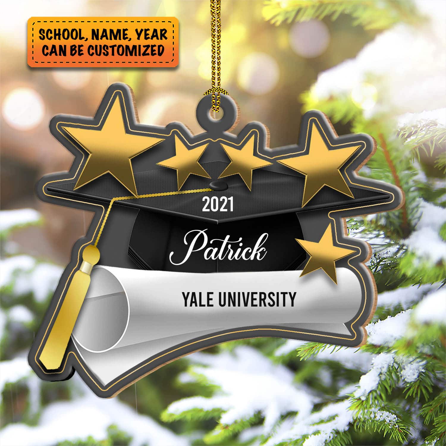 At CubeBik, besides custom shaped Christmas Ornaments / personalized die cut Christmas Ornaments, we also offer tees, hoodies, sweaters, raglans, tanks, wall arts, canvases, posters, mugs, blankets, engraved jewelry, personalized necklaces, flags, throw pillows, tote bags, hats, accessories and more on our website, so do not miss our other College Graduation Ornament, Masters Graduation Ornament, Masters Graduation Ornament, Nurse Graduation Ornament, Graduate Christmas Ornament, College Graduate Ornament, Girl Graduate Ornament, Boy Graduate Ornament, Senior Graduation Ornament related merchandise. Moreover, all the products are made-to-order and one of a kind custom designs you can’t get elsewhere in normal stores. Let’s discover CubeBik.com now and find your favorite personalized items. We can’t wait to surprise and build beautiful memories with you and your loved ones.