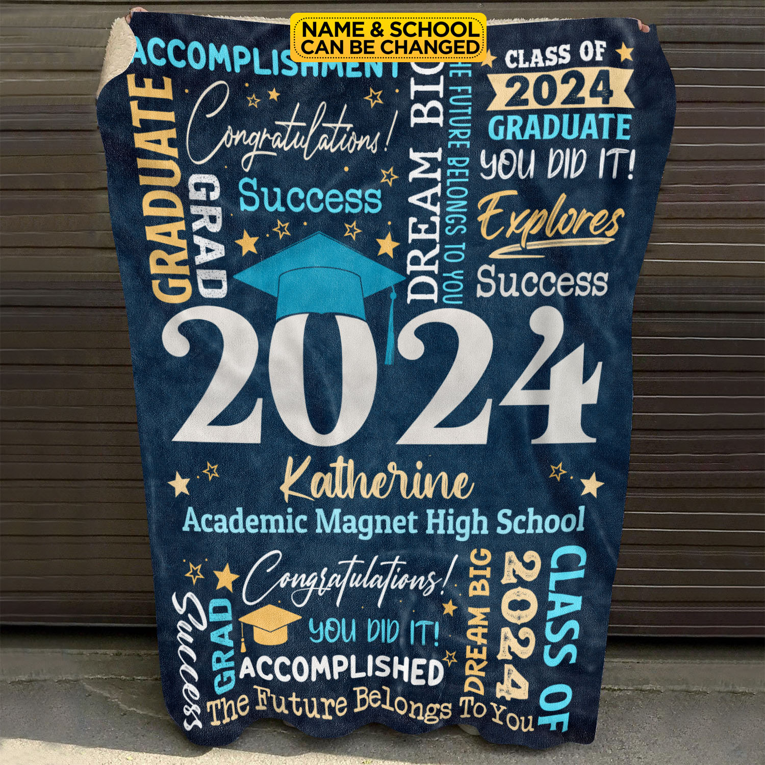 Let’s Shop Personalized Name Class of 2024 Graduation Blanket – Graduation gifts for Her and Him – Senior 2024 Custom Name Grad College Gifts!