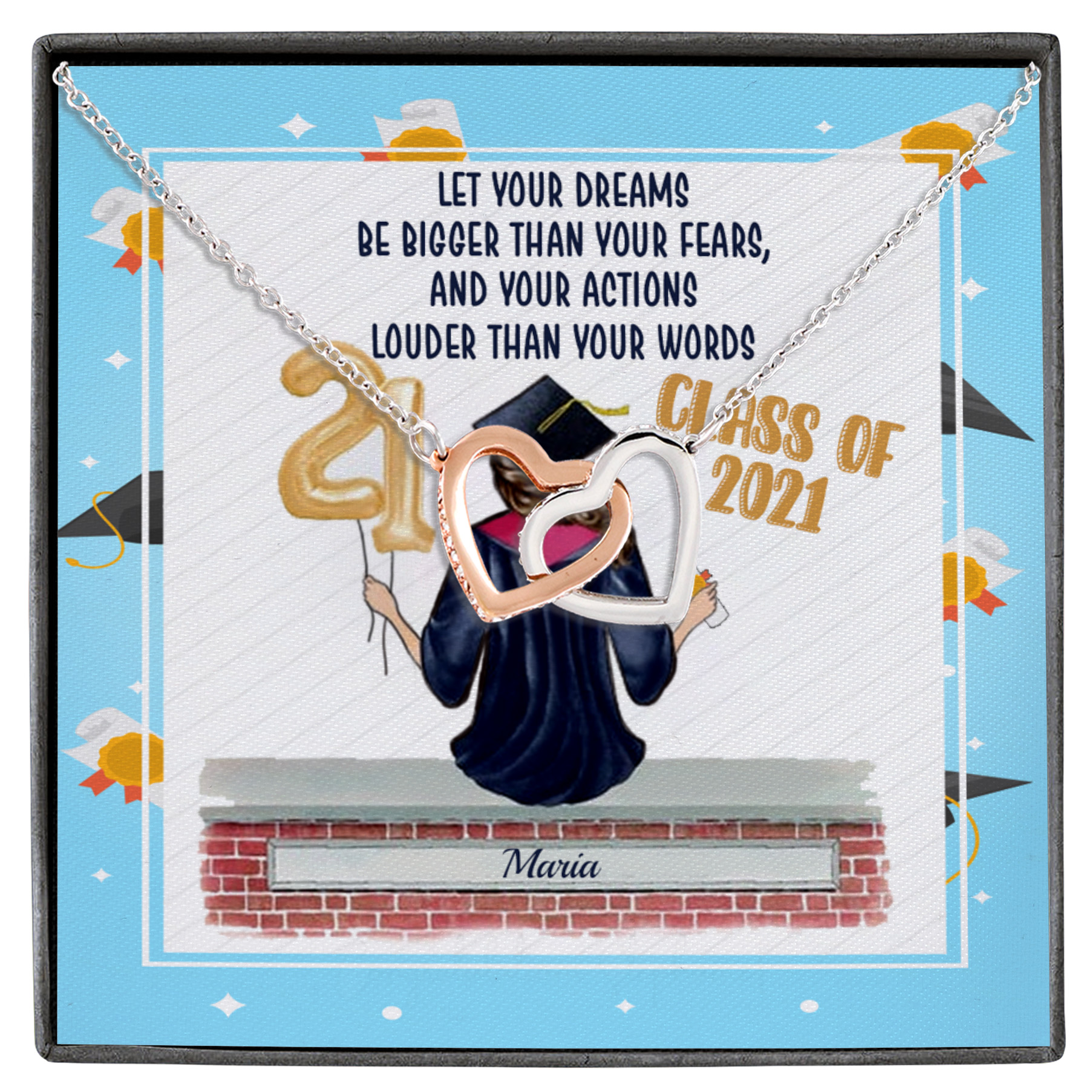 Let’s Shop Personalized Graduation Let Your Dreams Be Bigger Than Your Fears Interlocking Heart Pendant Necklace!