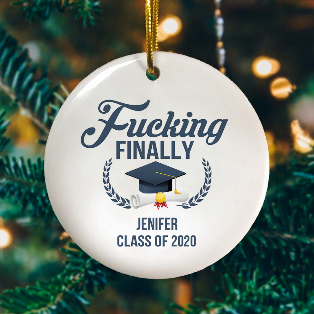 At CubeBik, besides ornaments, we also offer tees, hoodies, sweaters, raglans, tanks, wall arts, canvases, posters, mugs, blankets, engraved jewelry, personalized necklaces, printed face masks, throw pillows, tote bags, hats, accessories and more on our website, so do not miss our other Funny Graduation Gift, Fucking Finally Graduating, Best Friend Graduating, Funny Grad Gift, Custom Graduation Gift, Bestie Graduation Gift, Graduation Keepsakes, College Graduation Gift For Him, Cheap Graduation Gifts, Fun Graduation Gifts, Best College Graduation Gifts, Graduation Gifts For Daughter, Graduation Gifts For Sister, Personalized Graduation Decorations, Graduation Gift For Best Friend related merchandise. Moreover, all the products are made-to-order and one of a kind custom designs you can’t get elsewhere in normal stores. Let’s discover CubeBik.com now and find your favorite personalized items. We can’t wait to surprise and build beautiful memories with you and your loved ones.