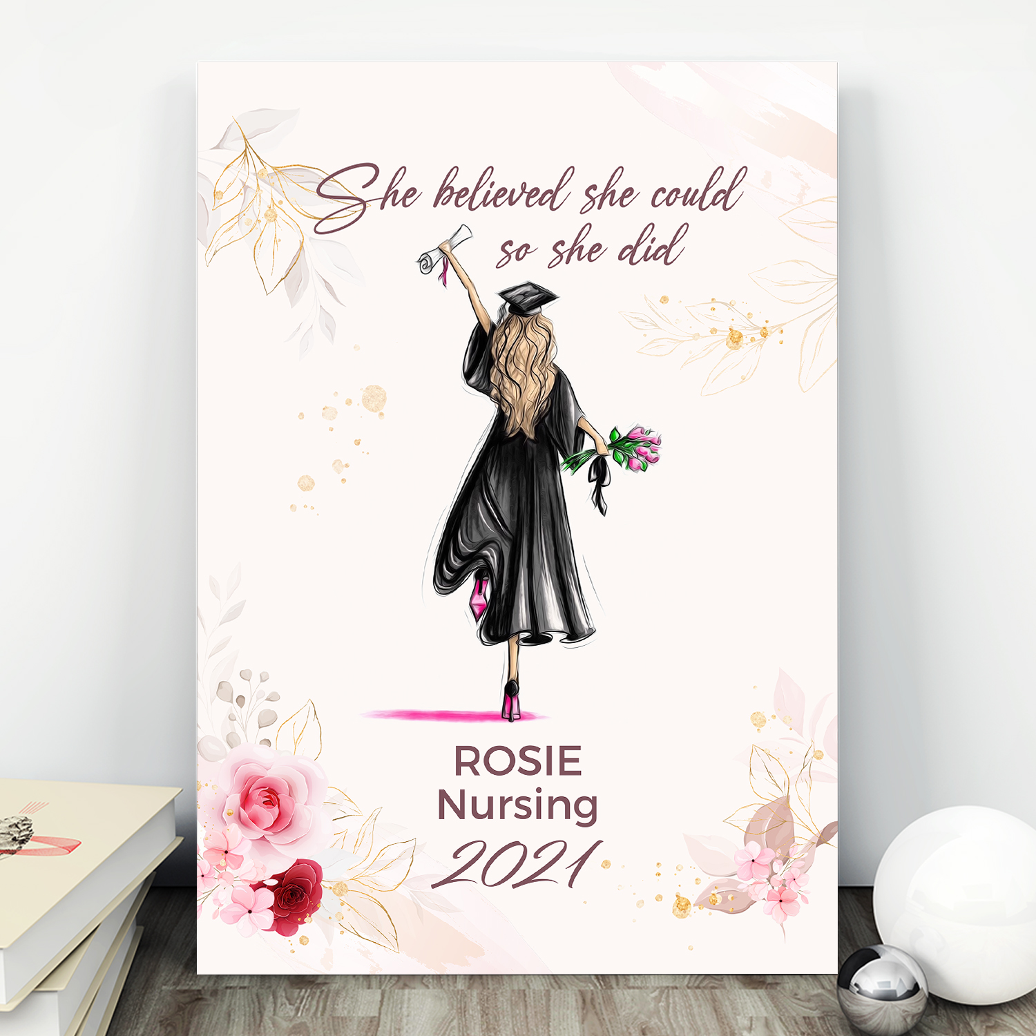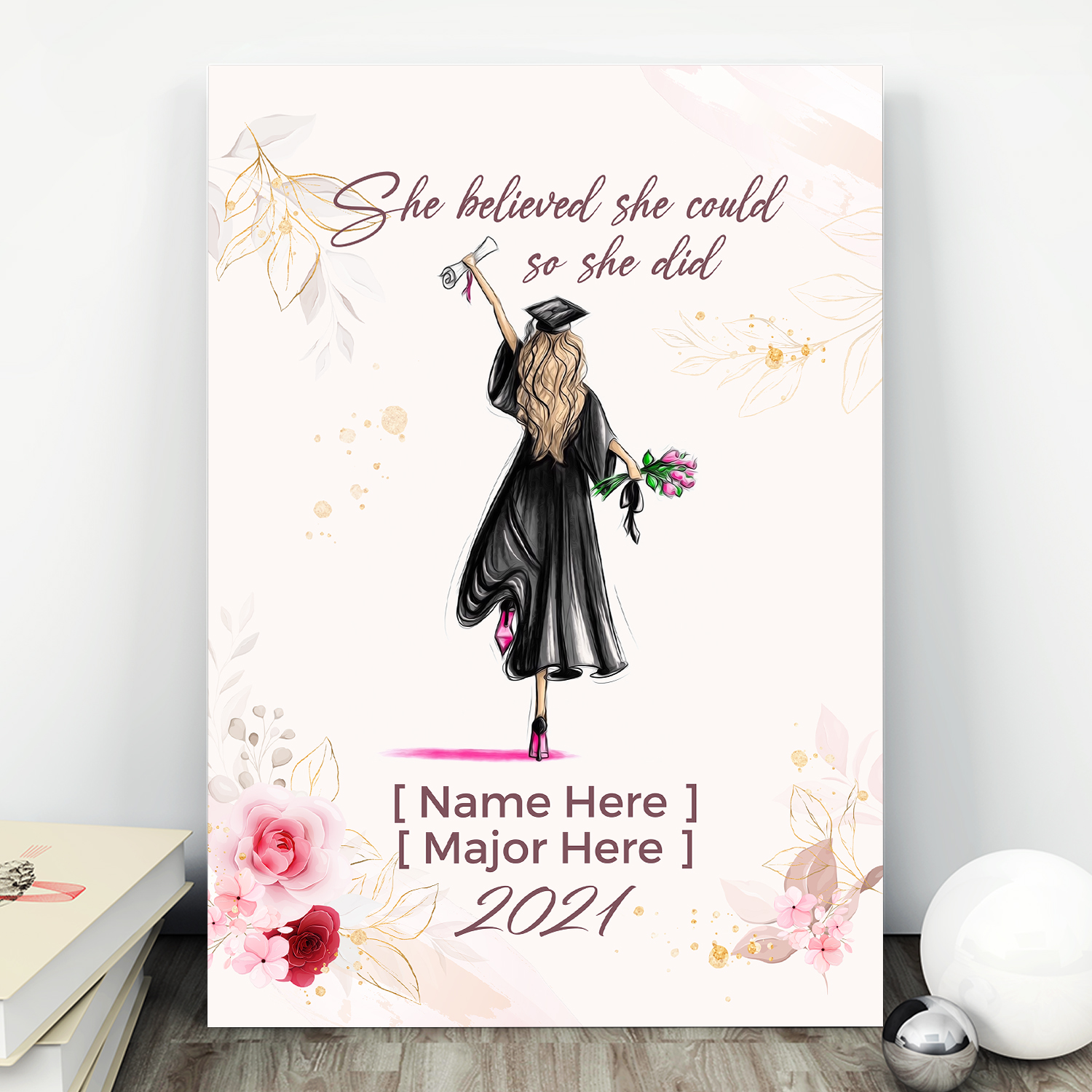 Let’s Shop Personalized Graduation She Believed She Could So She Did Frame Canvas – College Graduation Unframed Poster!