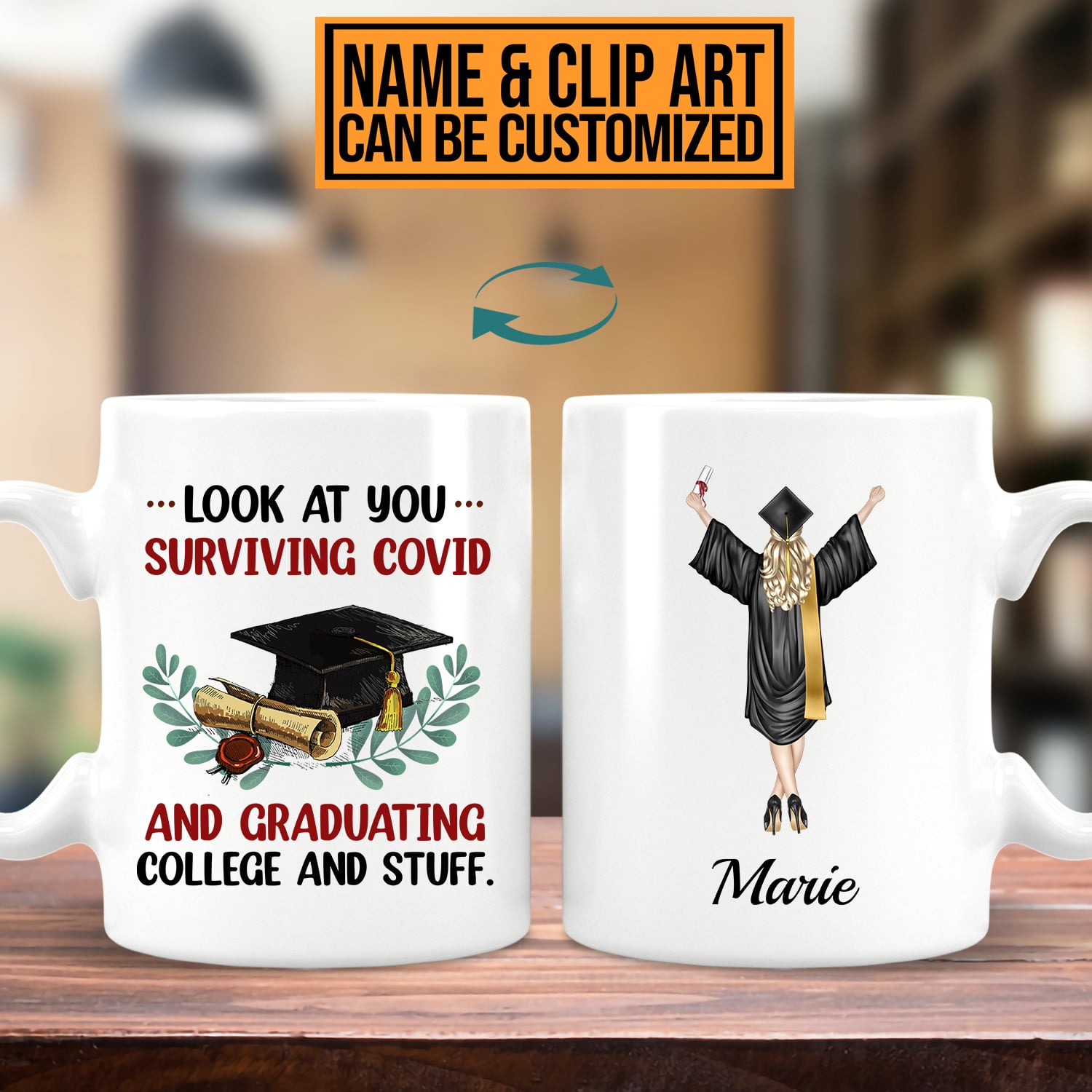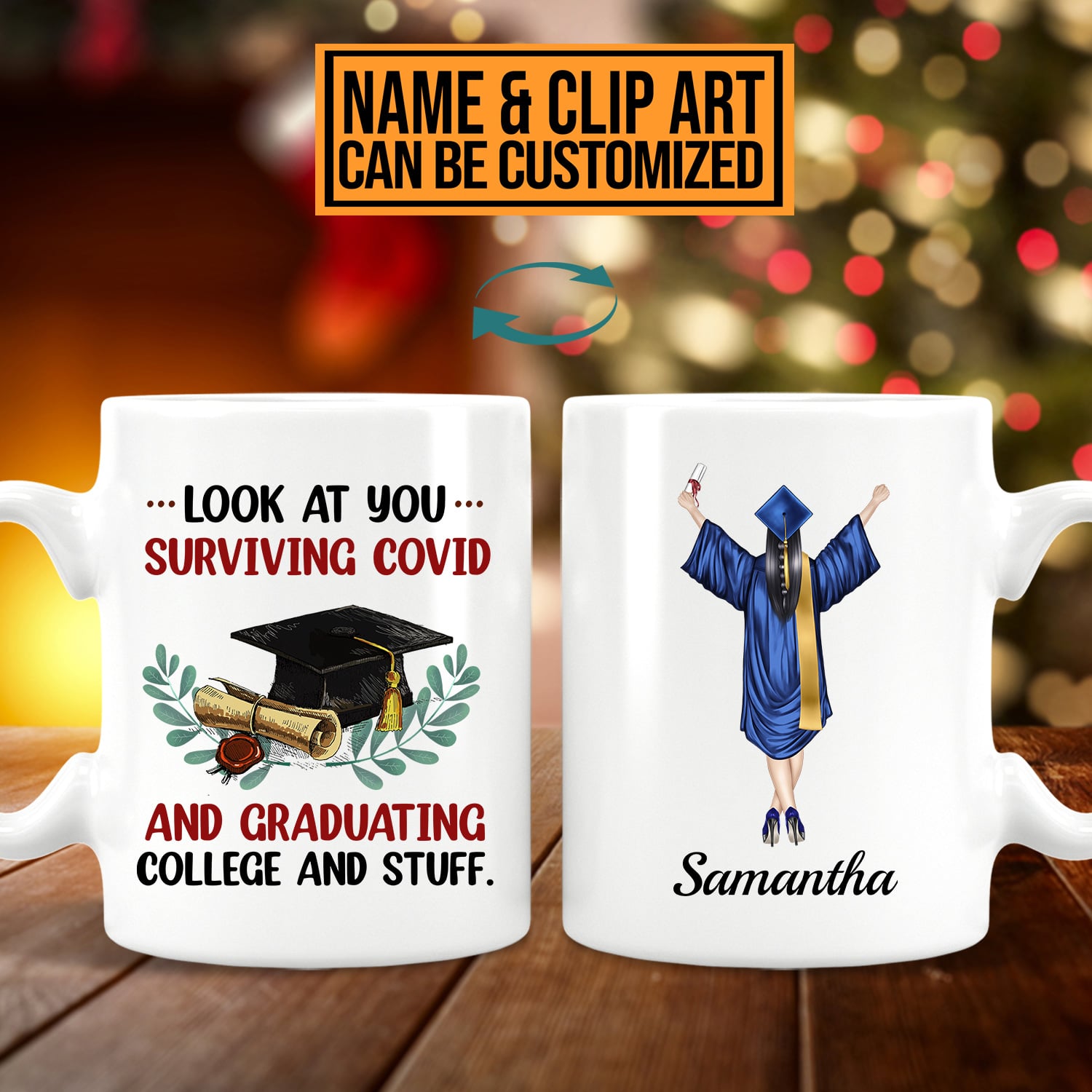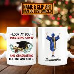 Let’s Shop Personalized Look At You Surviving Covid And Graduating College And Stuff Graduation 2 Sides Ceramic Coffee Mug!