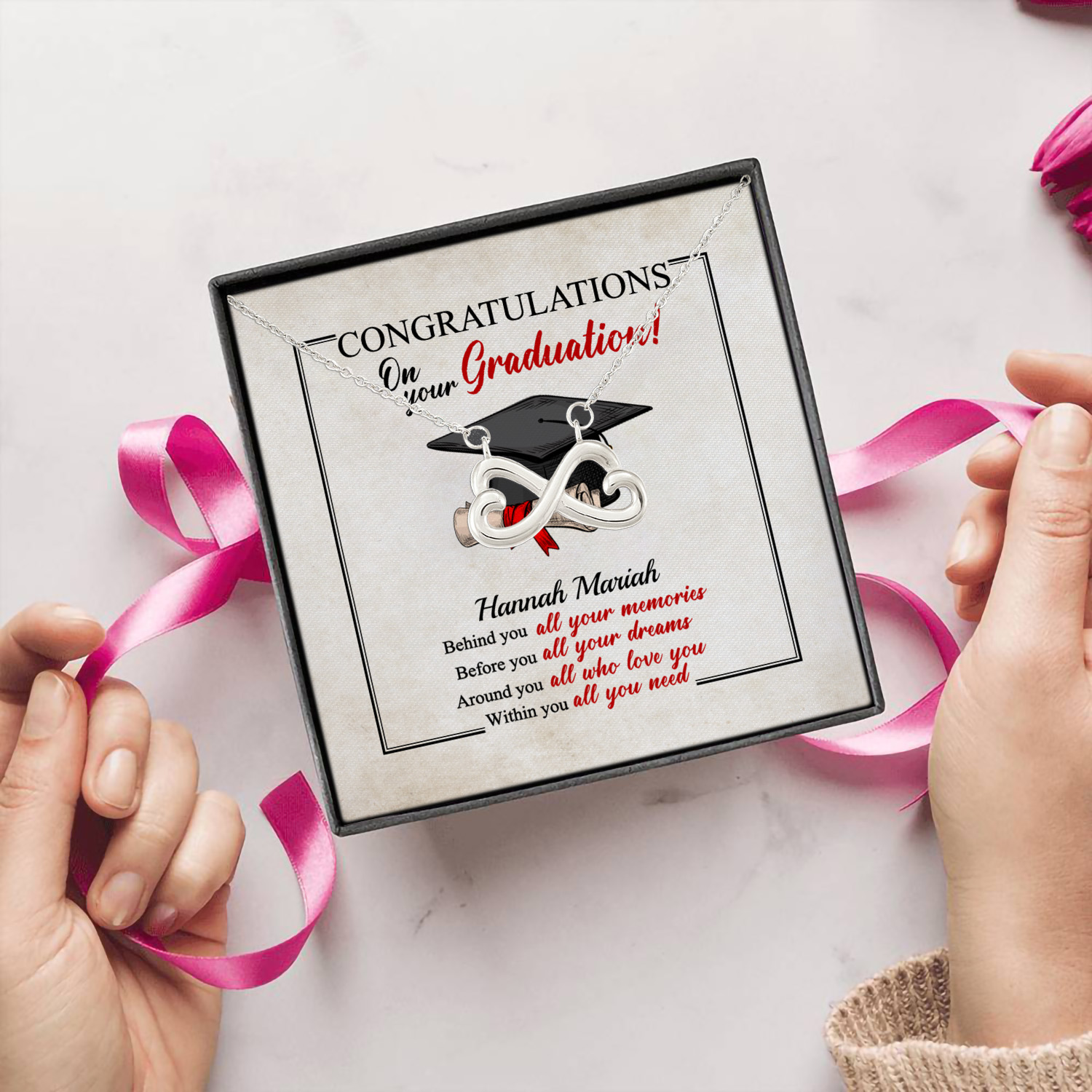 Let’s Shop Personalized Congratulations Graduation Behind You All Your Memories Class Of 2021 Infinity Heart Necklace!