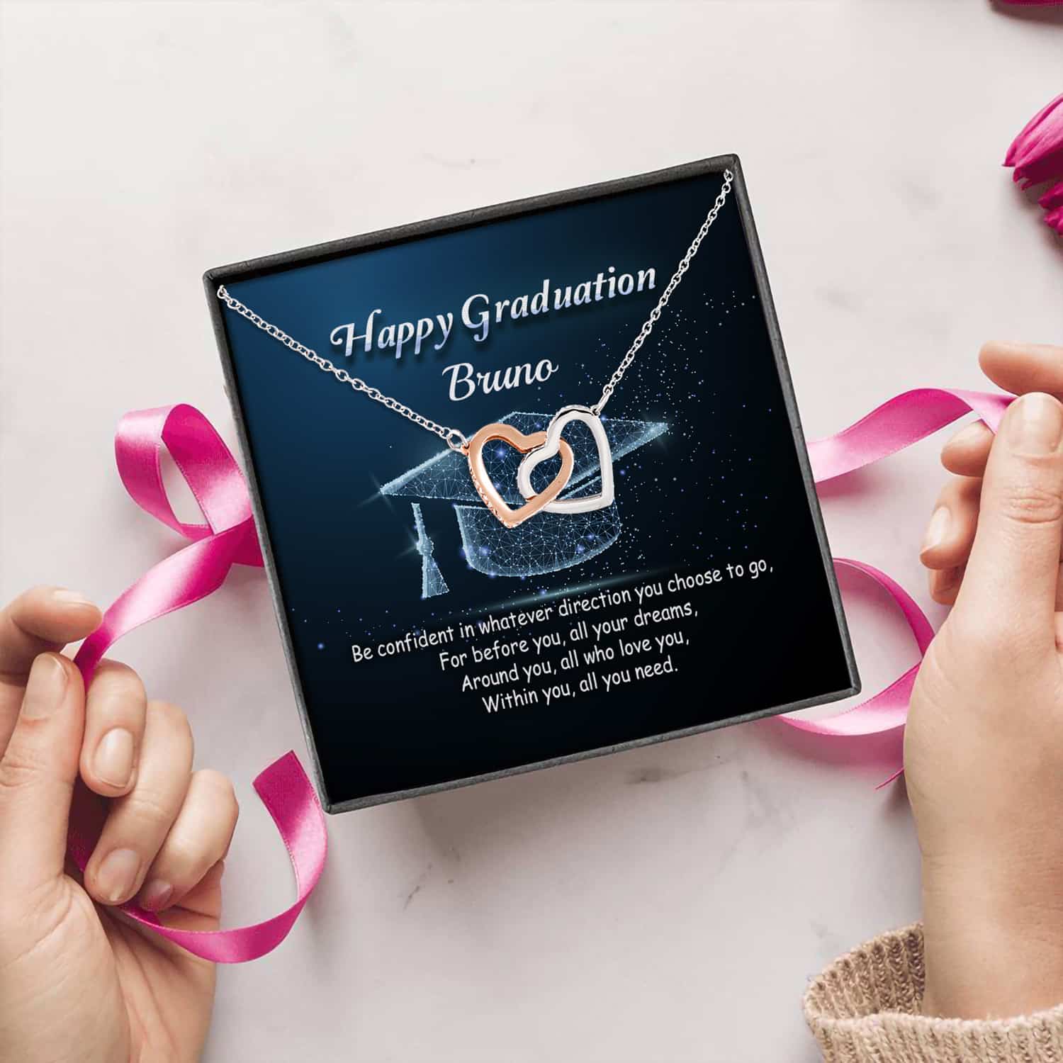 Let’s Shop Personalized Name Happy Graduation Be Confident In Whatever Direction Interlocking Hearts Pendant Necklace!