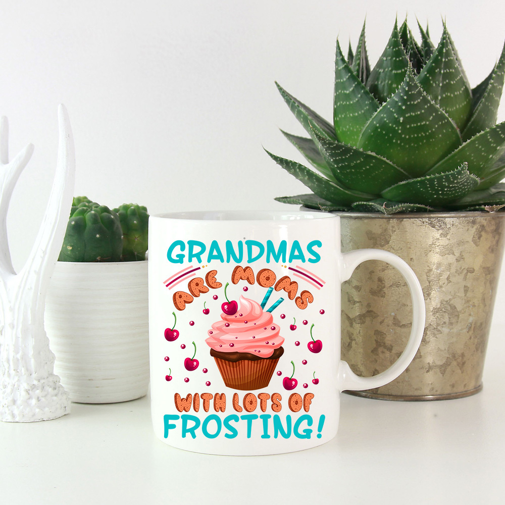 Let’s Shop Personalized Grandmas Are Moms with Lots of Frosting Ceramic Coffee Mug – Beer Stein – Water Bottle!