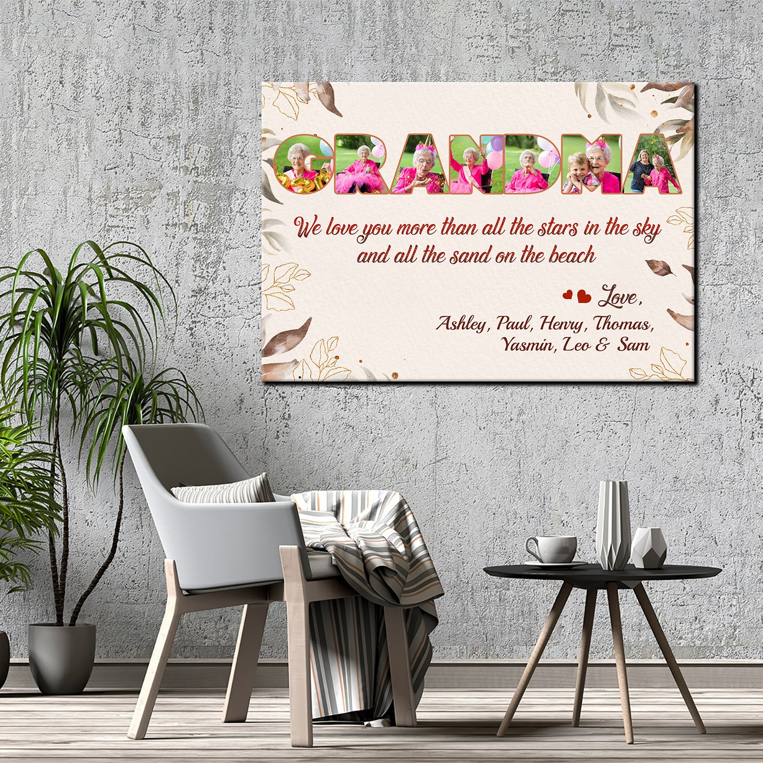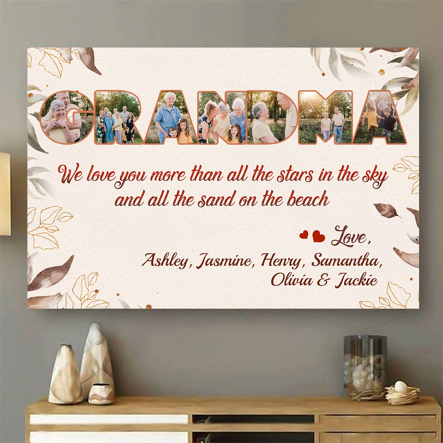 Let’s Shop Personalized Photo Grandma We Love You More than All the Star in The Sky and All the Sand on The Beach Canvas Prints!