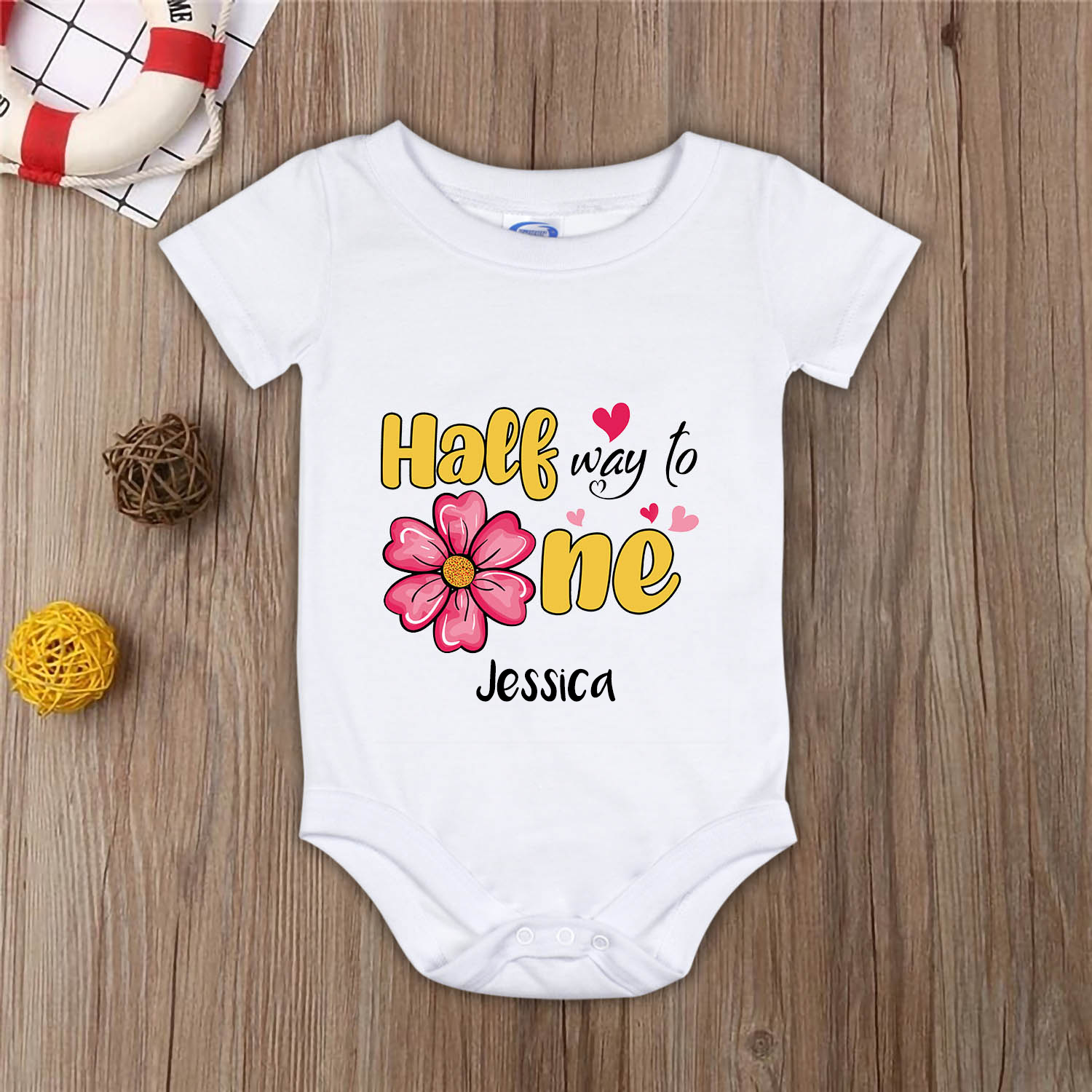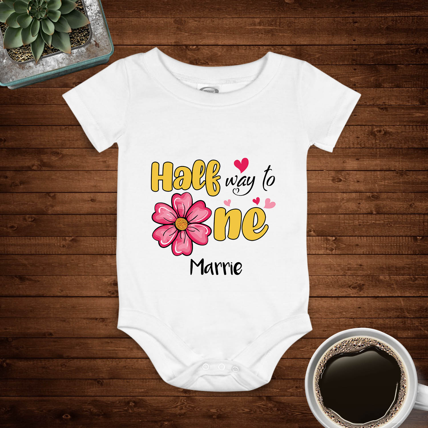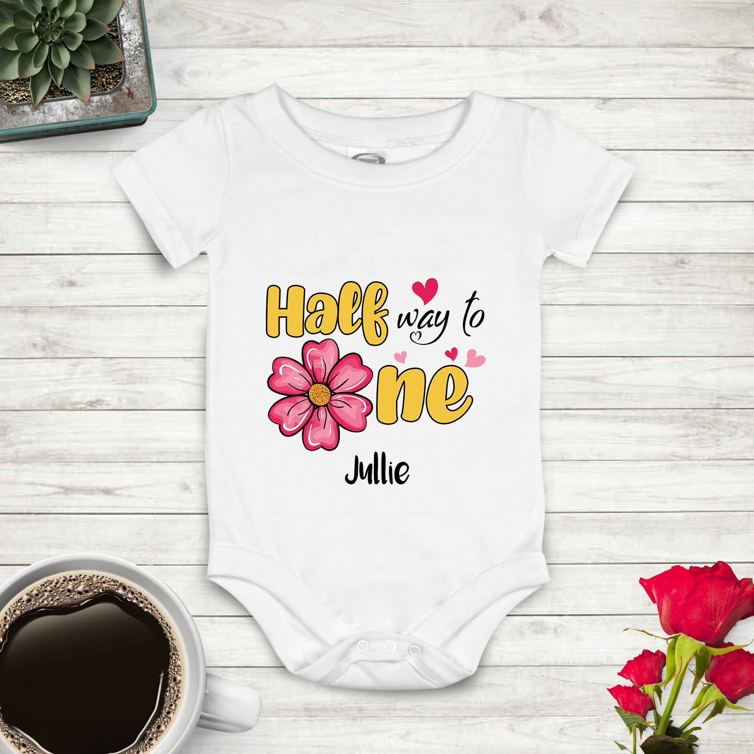 Let’s Shop Personalized Half Way to One Baby Onesie – Toddler Baby Infant Bodysuit – Half Birthday Outfit Girl!