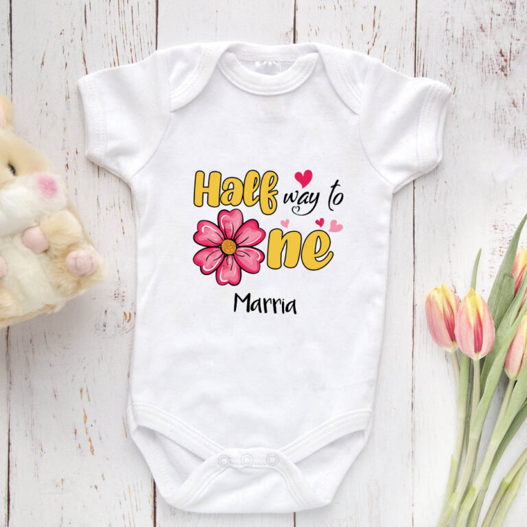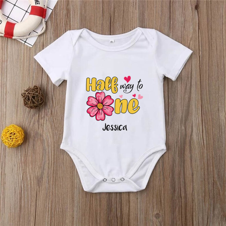 Let’s Shop Personalized Half Way to One Birthday Girl Baby Onesie – Toddler Baby Infant Bodysuit!