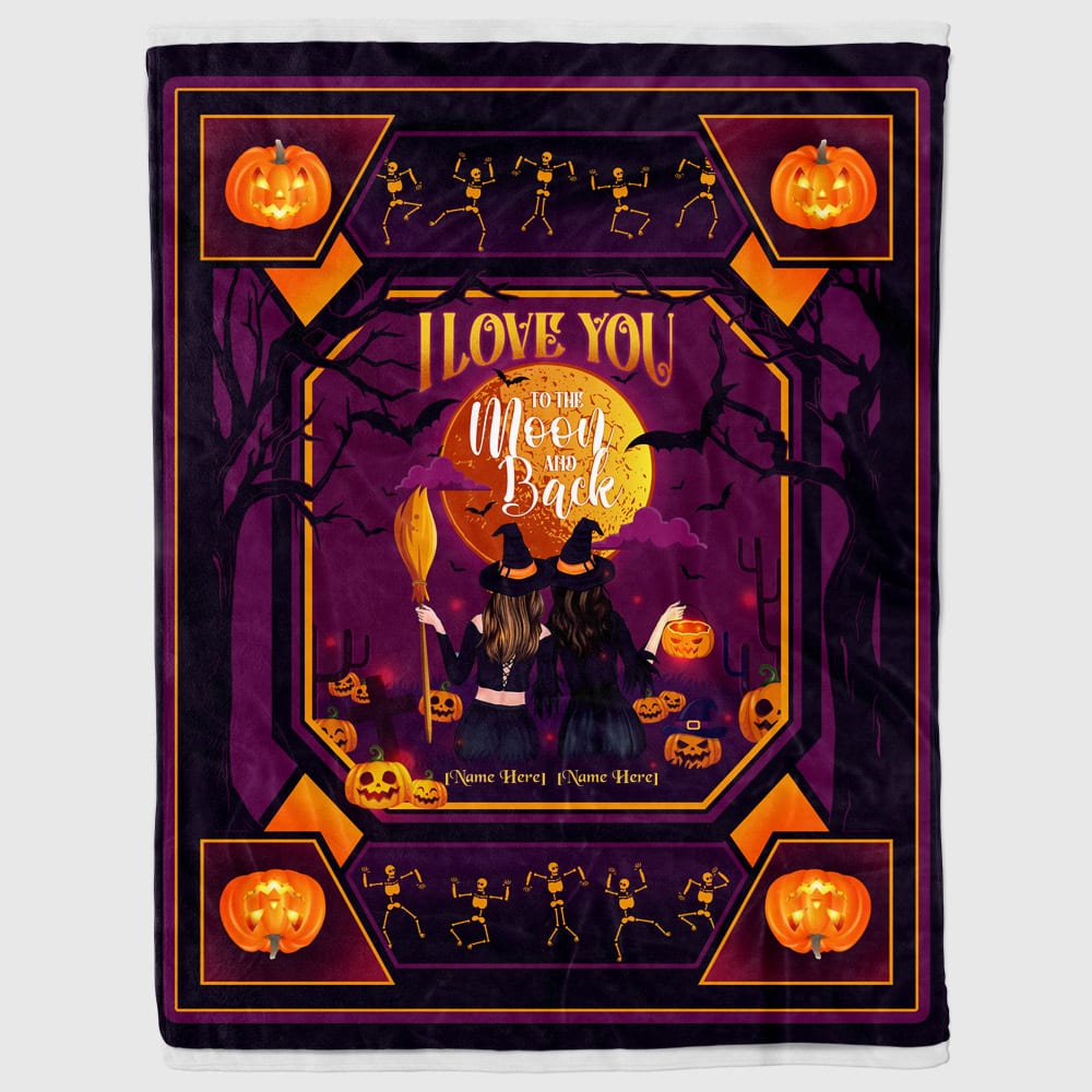 Let’s Shop Personalized Halloween Besties I Love You to the Moon and Back Fleece Blanket – Premium Sherpa Blanket!