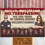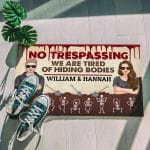 Are you spending too much time to find creative merchandise for you or suitable & special gifts for your mommy, your daddy, your son, your daughter, your children, your friends or someone you love? The struggle is over because we have various No Trespassing We Are Tired of Hiding Bodies, No Trespassing We Are Tired of Hiding Bodies Doormat, Personalized Wedding Gift, Personalized Wedding Doormat, Personalized Wedding Gifts for The Couple, Personalized Anniversary Gifts, Personalized Anniversary Gifts for Him, Personalized 50th Anniversary Gifts, personalized Anniversary Gifts for Her, personalized Anniversary Gifts for Boyfriend, Personalized Couple Gifts, Personalized Couple Wall Art, Personalized Halloween Couple Gifts which will make perfect presents for your beloveds. In order to make your present stand out, we have created lots of unique and awesome customized photo gifts & personalized designs.