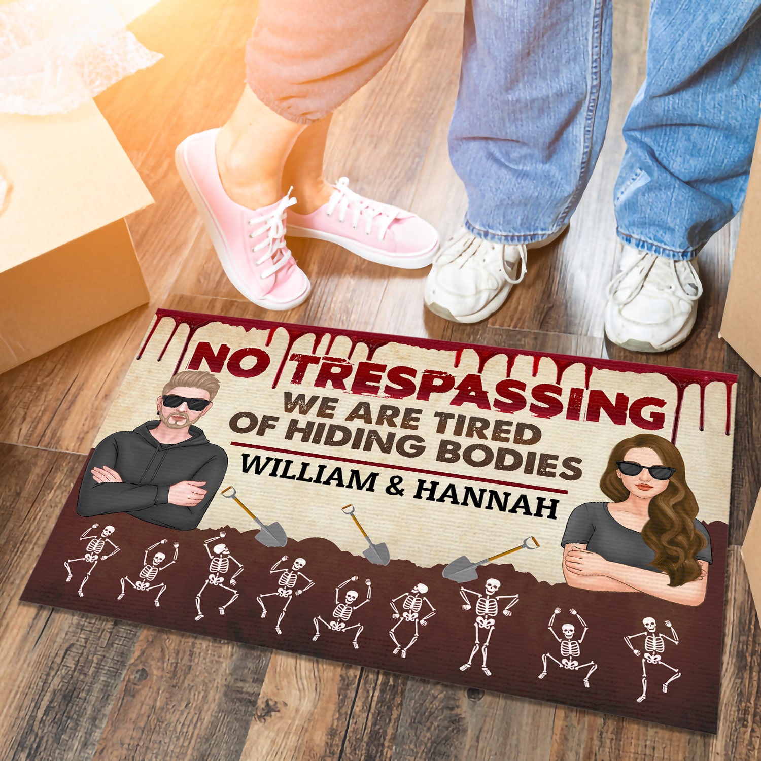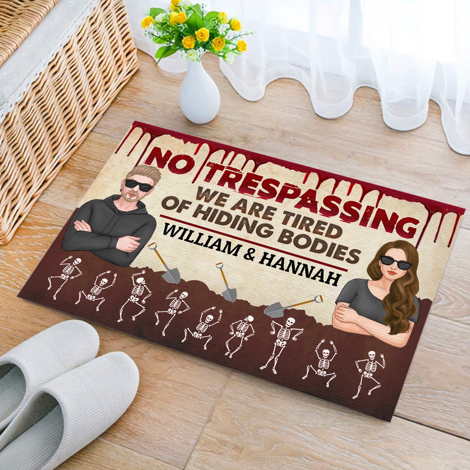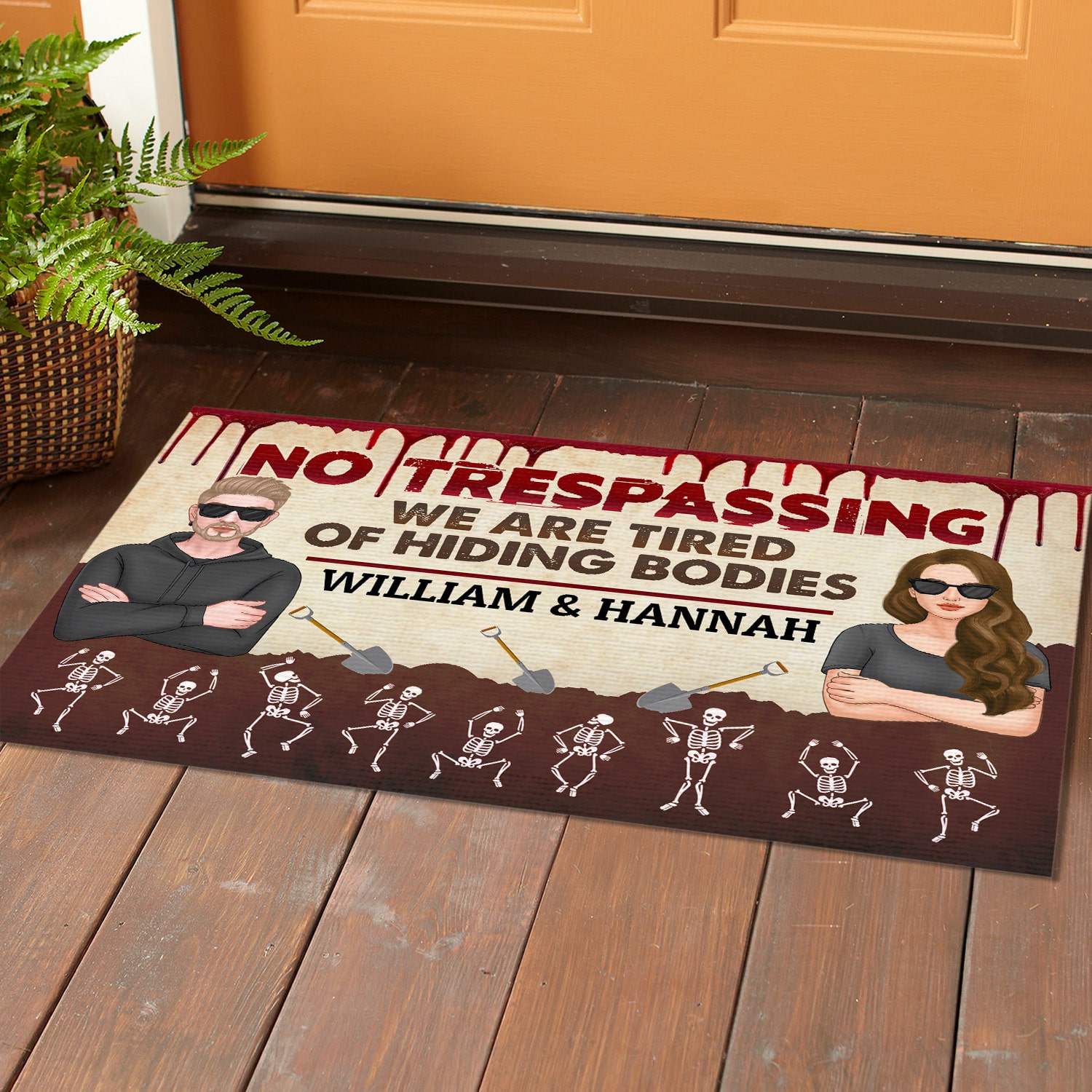 Let’s Shop Personalized Couple Gifts No Trespassing We Are Tired of Hiding Bodies Entrance Indoor Outdoor Decorative Doormat!