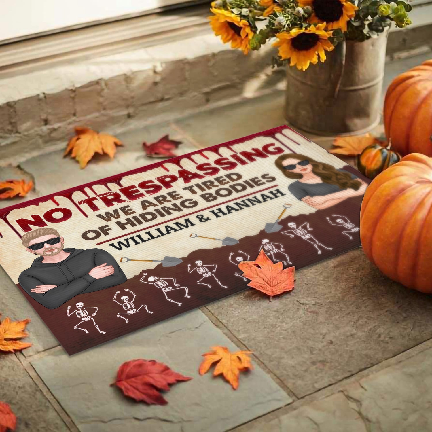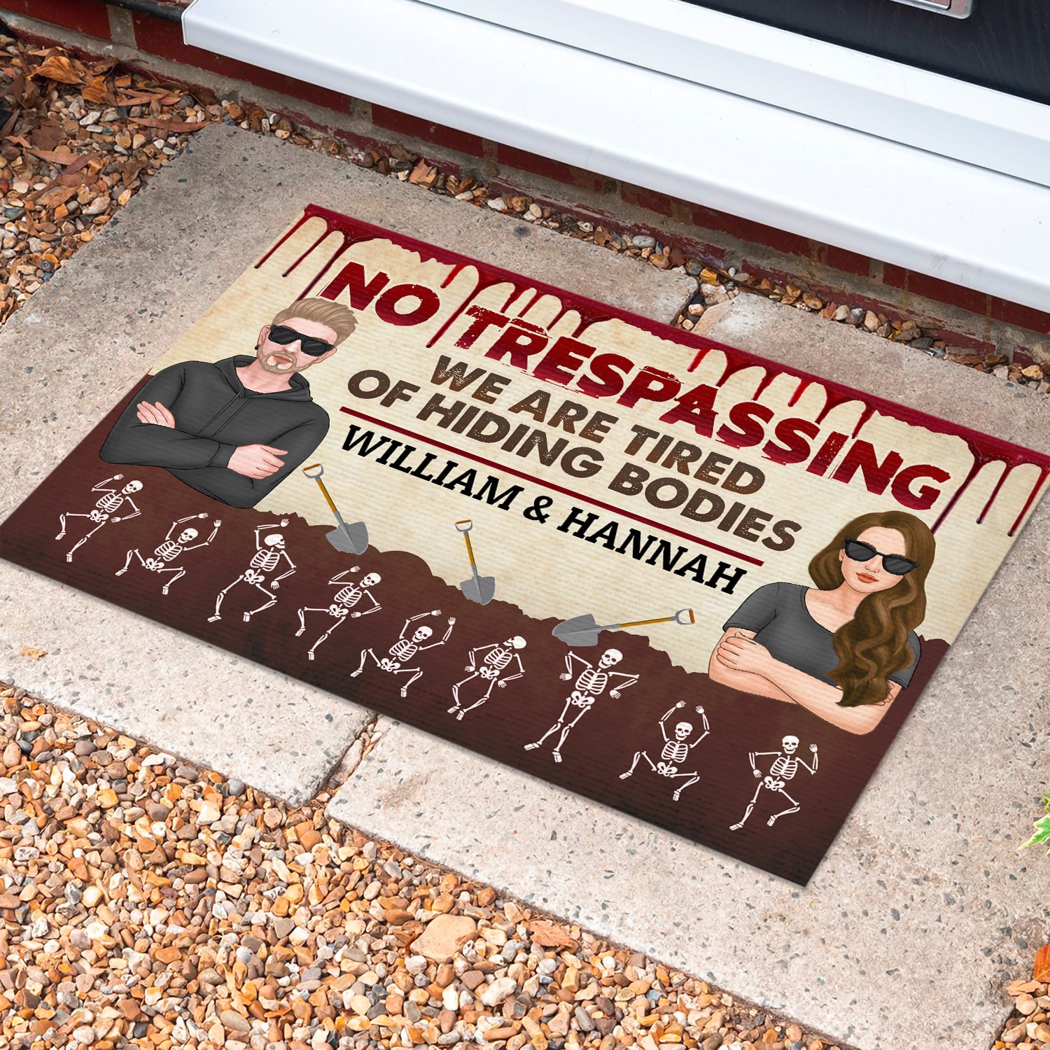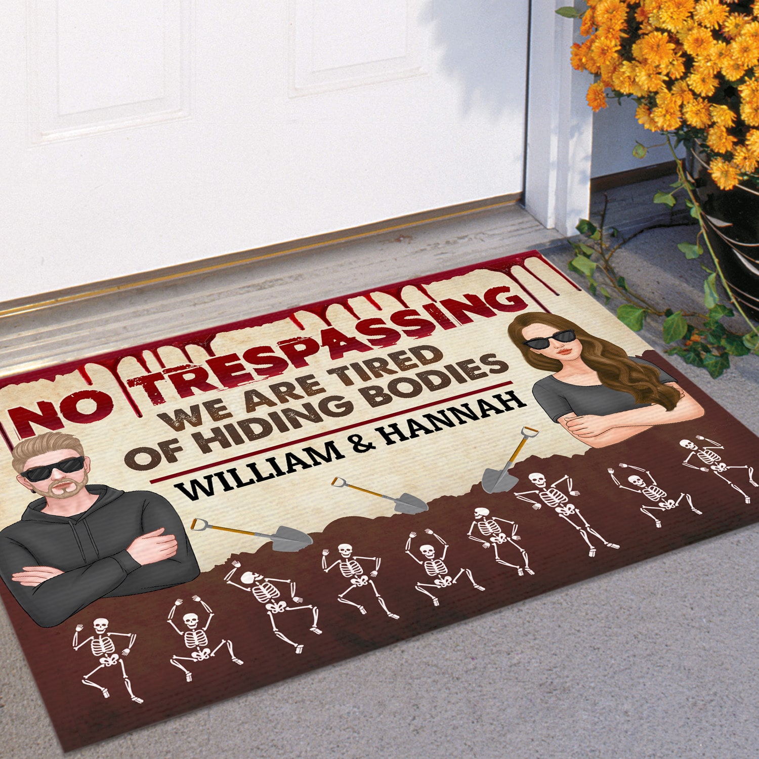 Let’s Shop Personalized Couple Gifts No Trespassing We Are Tired of Hiding Bodies Entrance Indoor Outdoor Decorative Doormat!