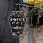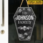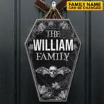 Let’s Shop Personalized Halloween Door Hanger – Custom Family Name Halloween Coffin Shape Door Sign!