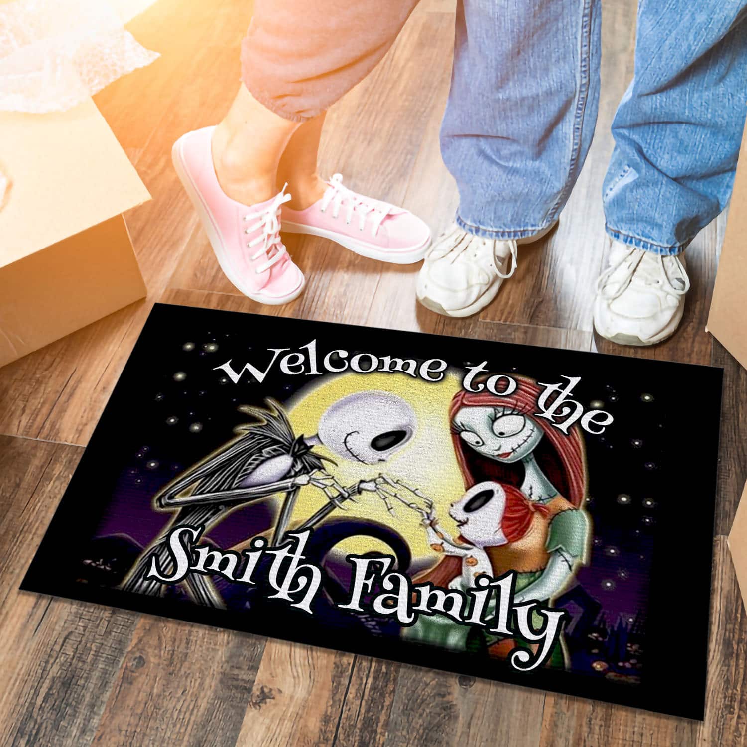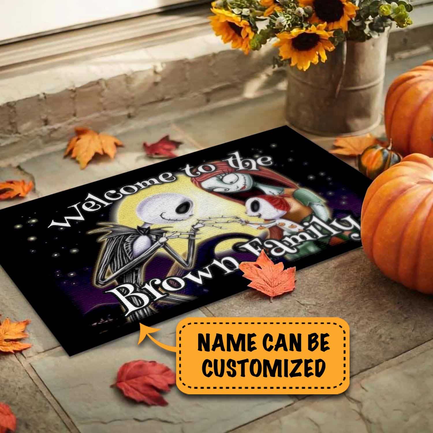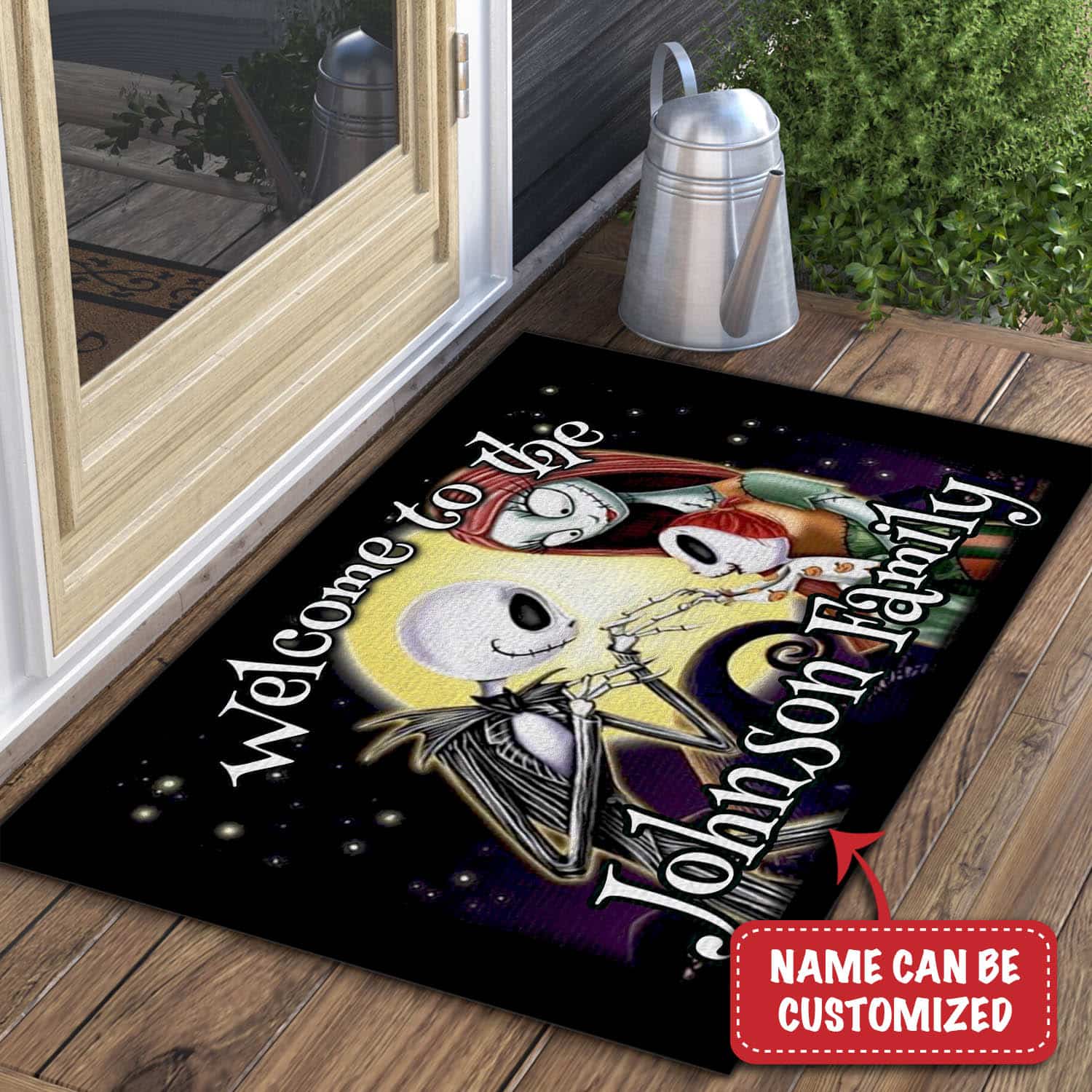 Let’s Shop Personalized Jack And Sally Family Nightmare Before Christmas Indoor Doormat – Custom Halloween Outdoor Door Mat!