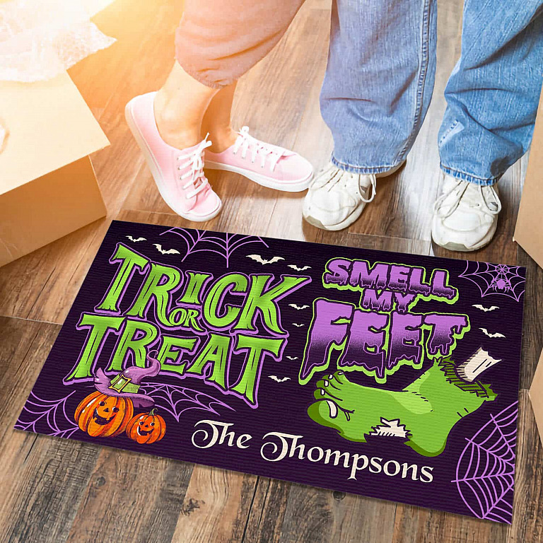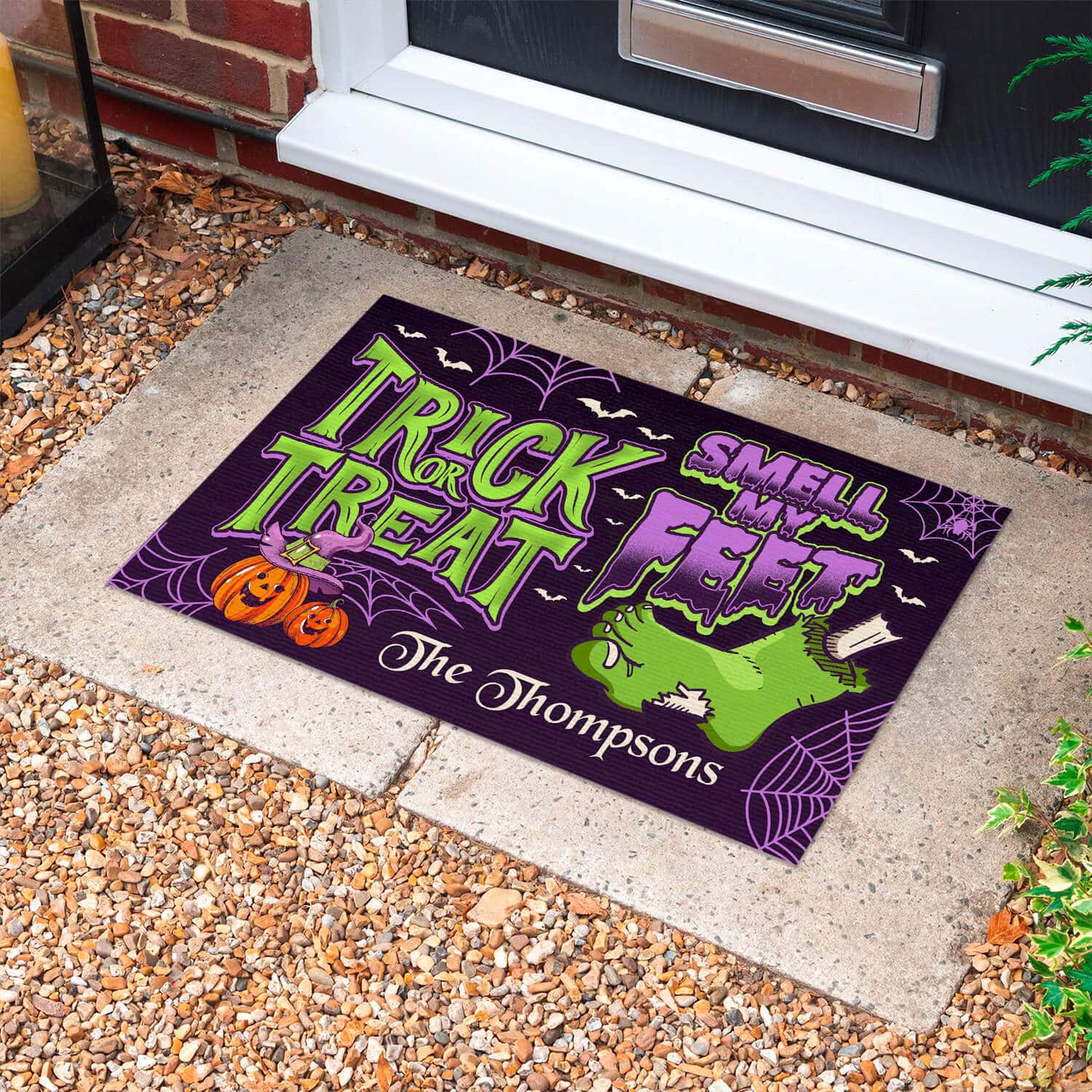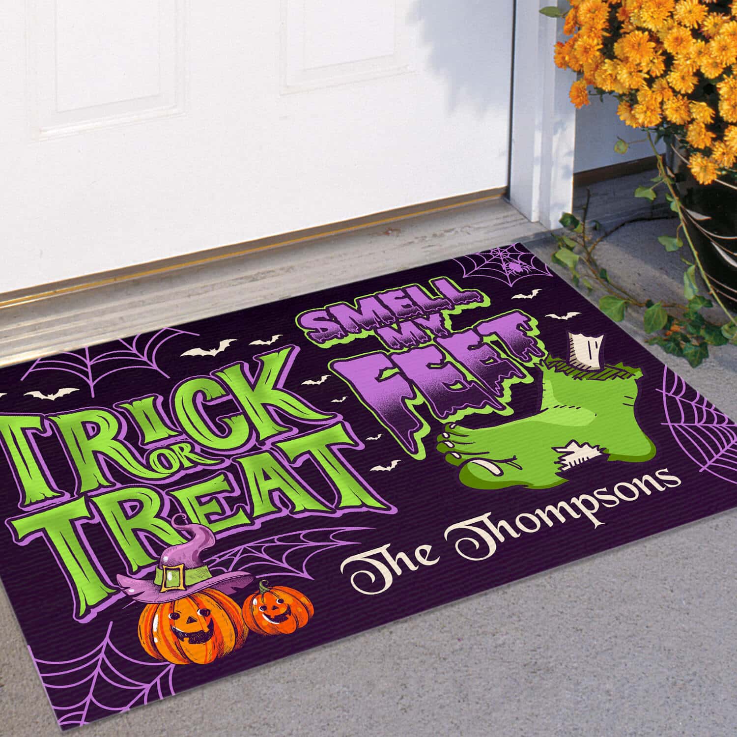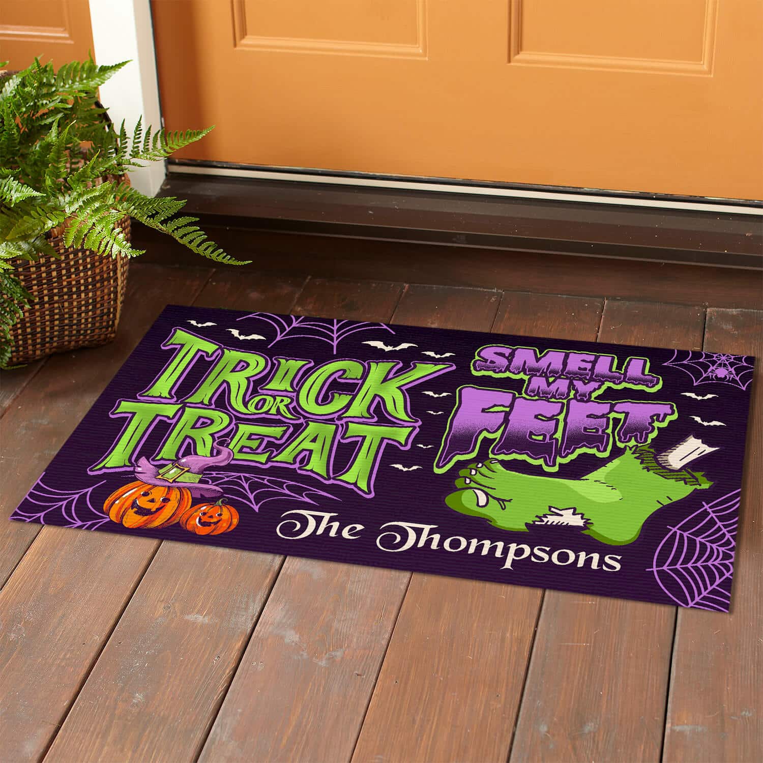 Let’s Shop Personalized Trick Or Treat Smell My Feet Doormat – Halloween Zombie Welcome Mat!