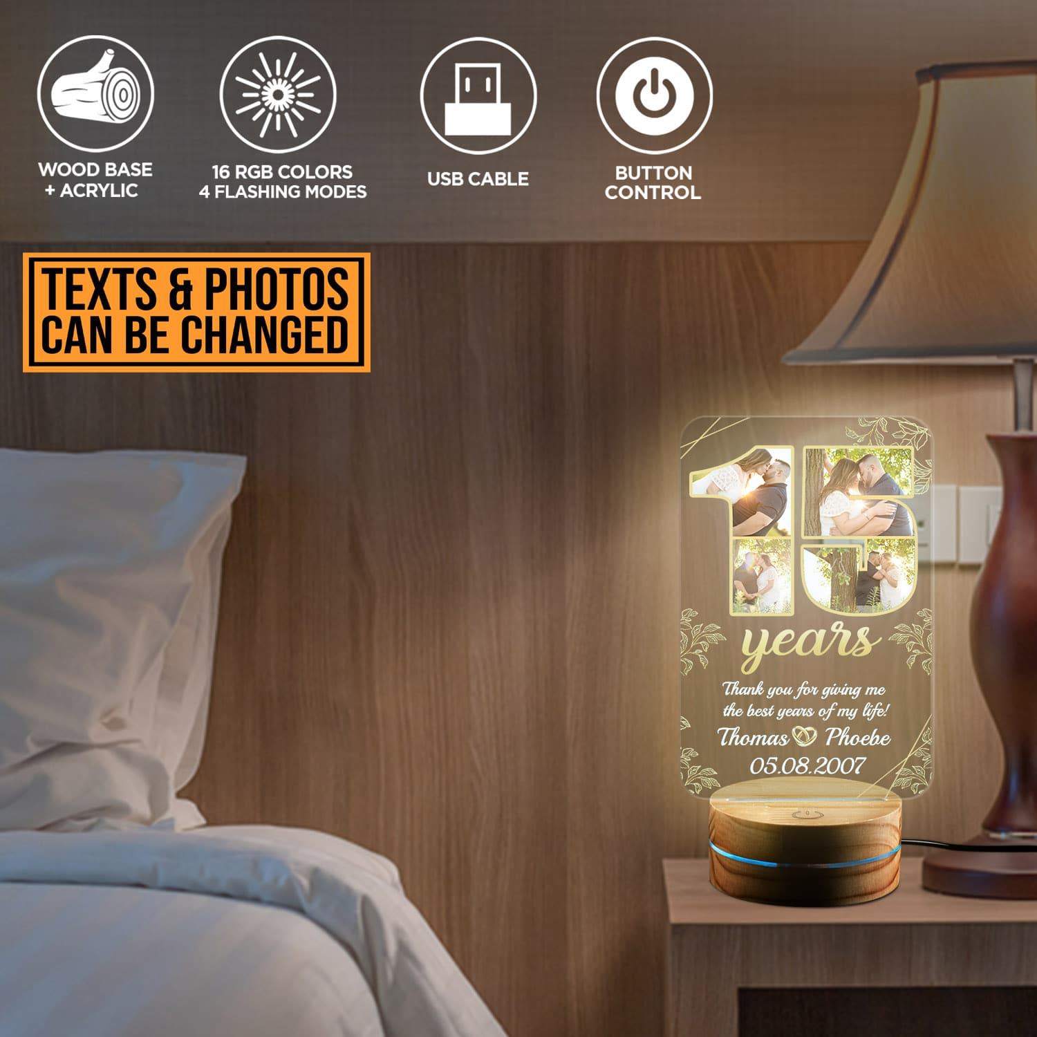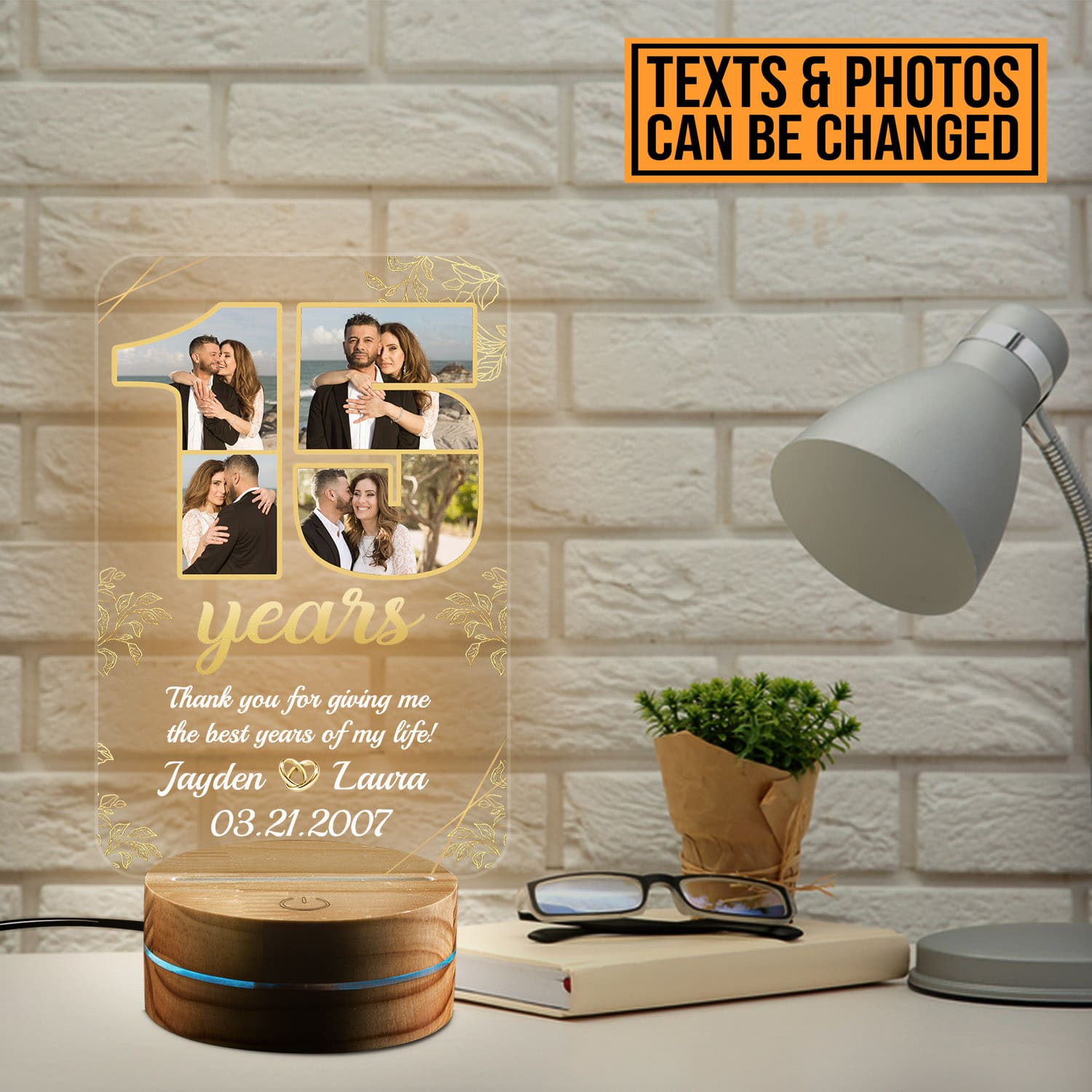 Let’s Shop Personalized Happy Anniversary 15th Wedding Gift for Couples – Romantic Custom Gifts for Him or Her – Wedding Anniversary Date LED Light!